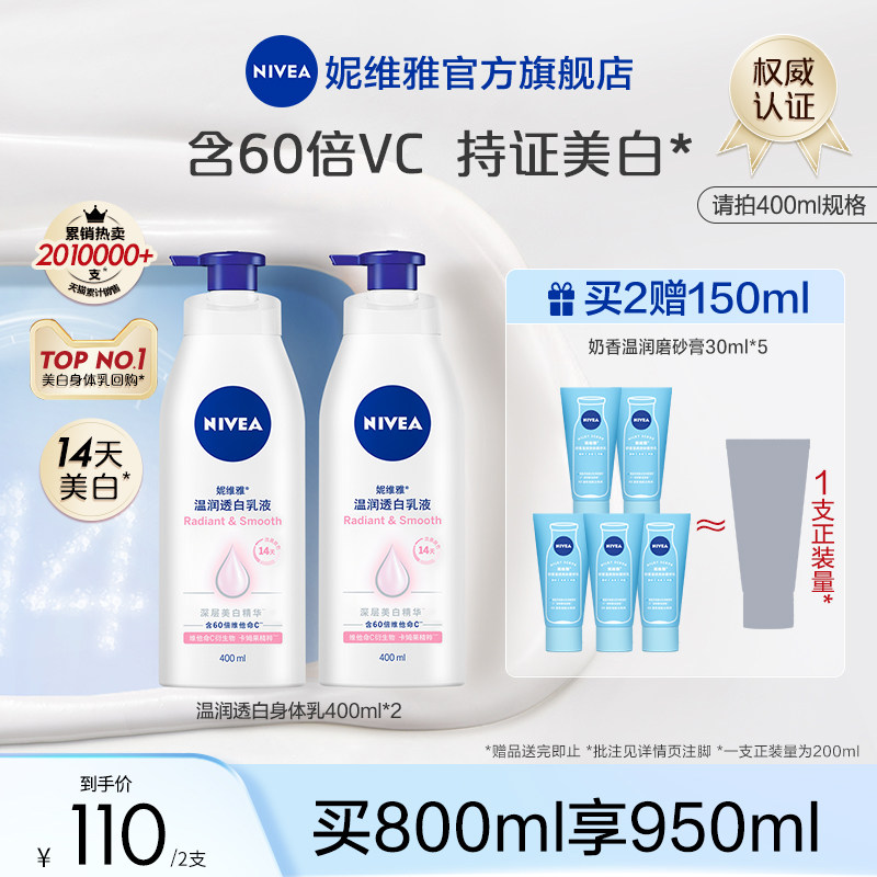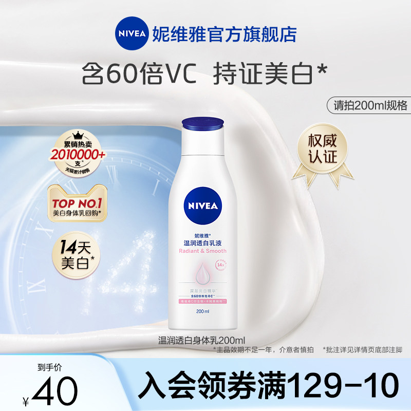 天猫nivea妮维雅官方旗舰店,妮维雅VC大白瓶美白身体乳保湿秋冬滋润补水留香全身女士官方正品,14天持续美白 持有美白特证肌肤嫩润亮