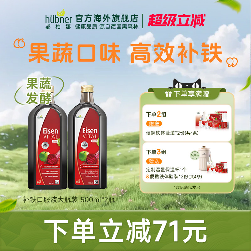 天猫huebner海外旗舰店,huebner进口德国补铁气血孕妇,高铁高含量 多种果蔬口感好 液态铁易吸收