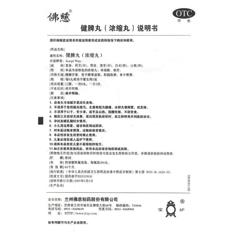 【佛慈】健脾丸(浓缩丸)0.375g*200丸/盒