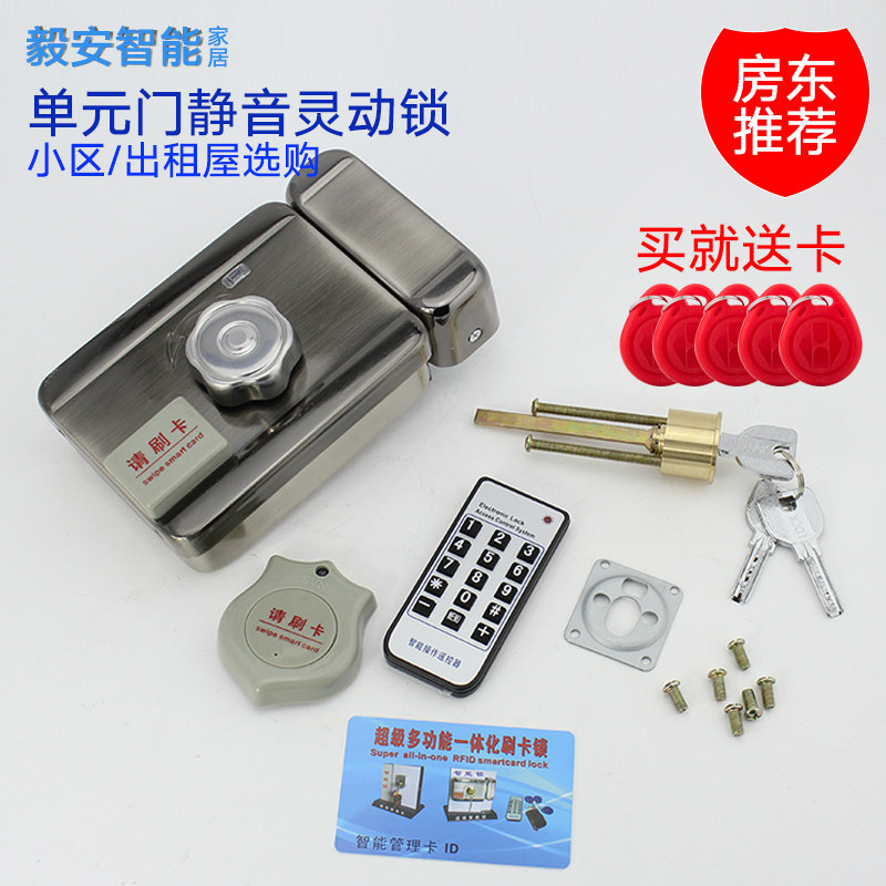 天猫毅安家居用品专营店,门禁电控锁单元门感应家用刷卡锁,刷卡 遥控开门 全金属外壳 12V-18V电压