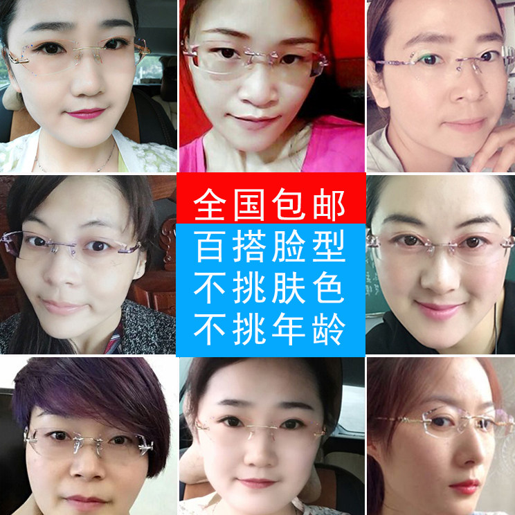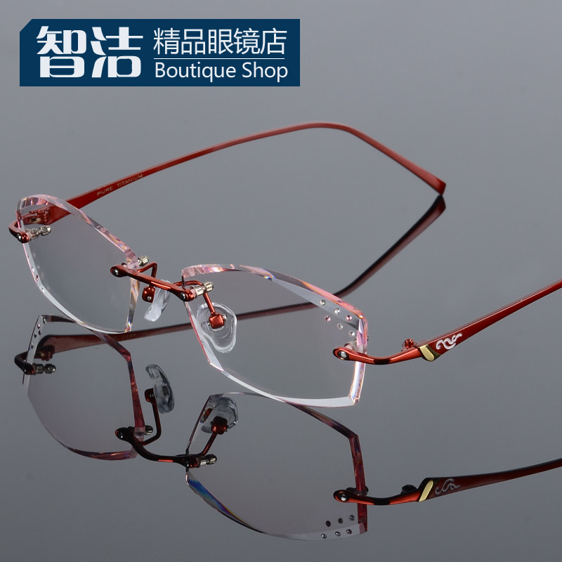 淘宝智洁精品眼镜,女韩国钻石无框超轻平光配切边眼镜
