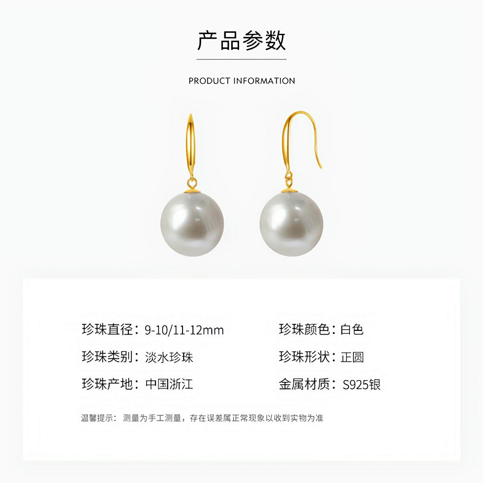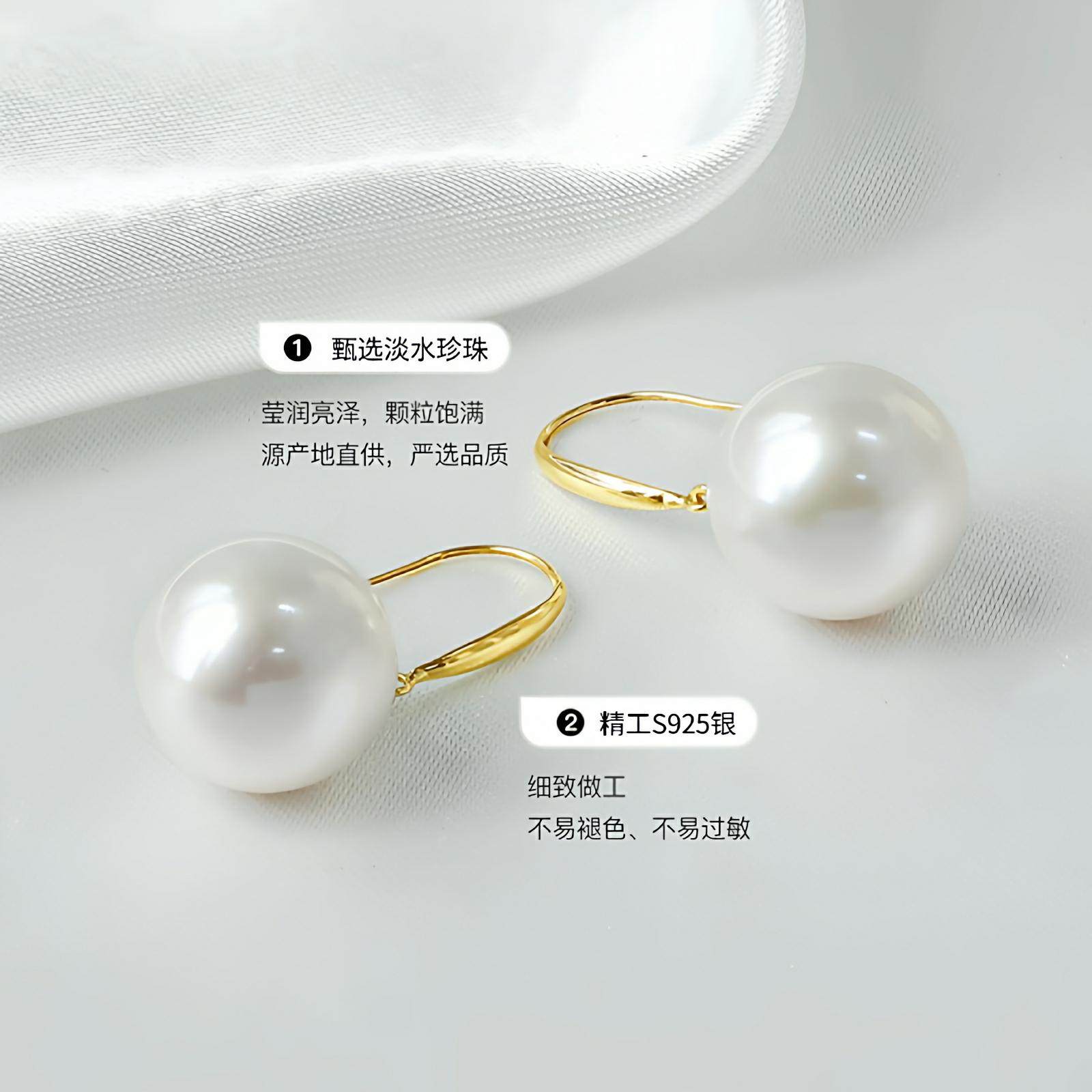天猫1688官方工厂,诸暨淡水珍珠耳钩女S925银正圆强光耳环简约百搭高级气质节日礼物