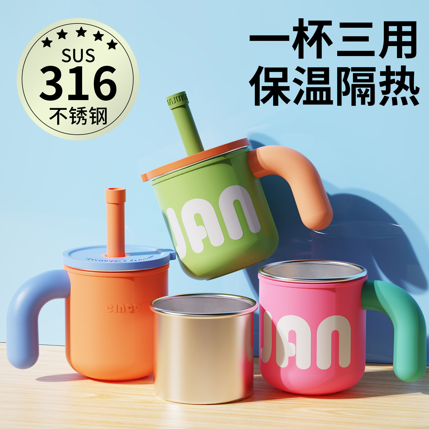 天猫名菲旗舰店,316不锈钢儿童刻度吸管牛奶杯,316不锈钢儿童刻度吸管牛奶杯
