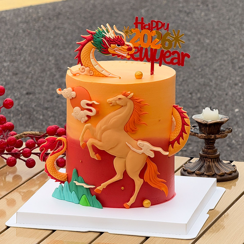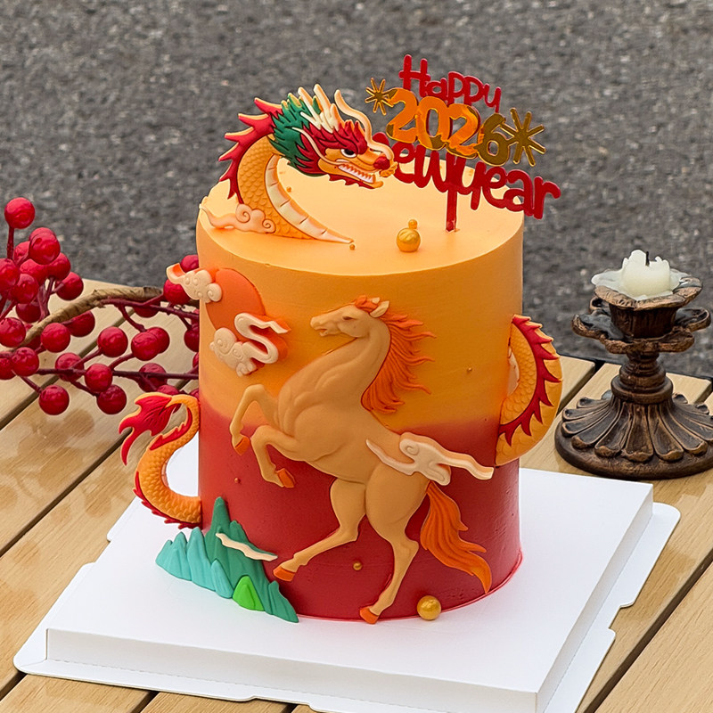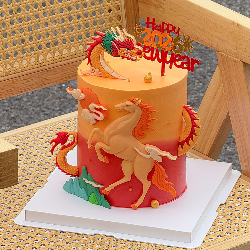 淘宝千屿烘焙用品店,中式马年新年蛋糕装饰2026跨年龙马精神山峰祥云节日烘焙装扮摆件