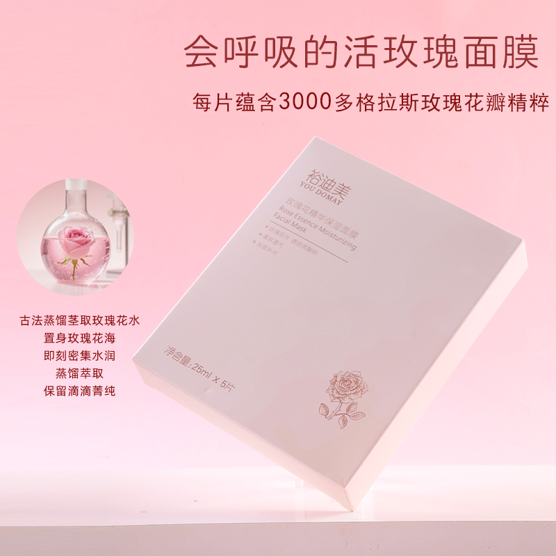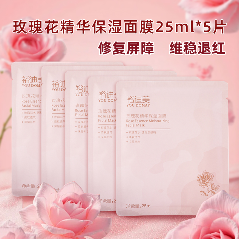 淘宝裕迪美护肤品牌店,玫瑰花补水保湿修复面膜5片二裂酵母敏感肌正品男女美容院面膜
