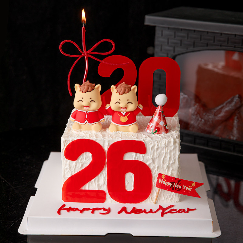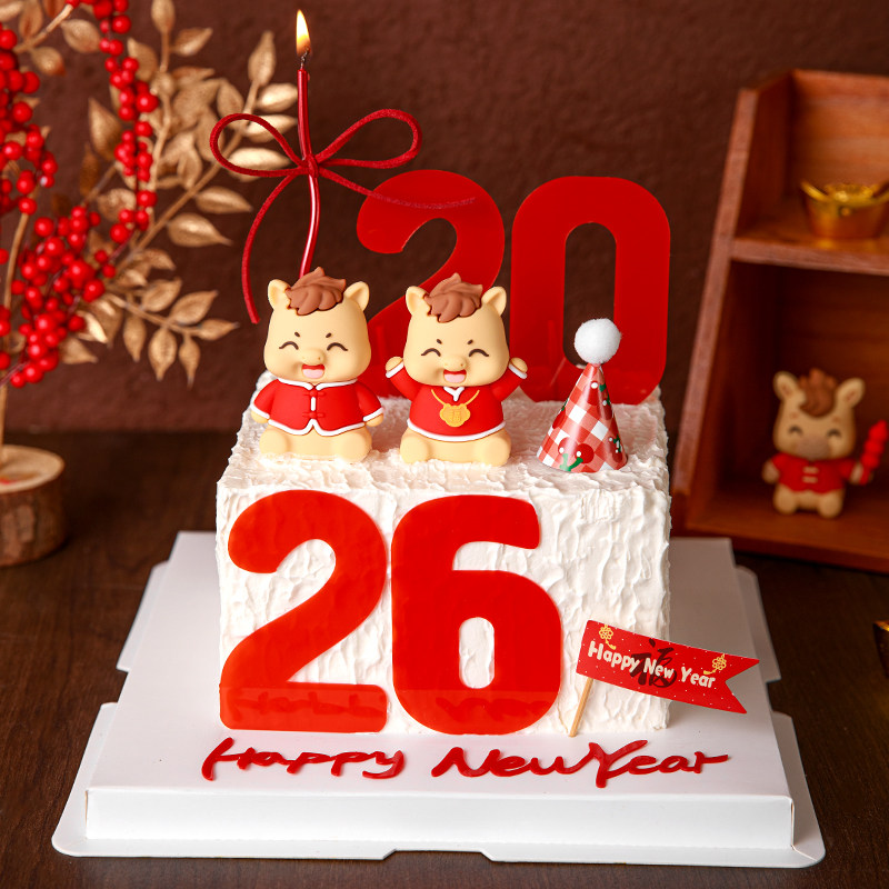 淘宝千屿烘焙用品店,2026新年快乐蛋糕装饰亚克力可爱马宝宝摆件跨年元旦春节插旗插件