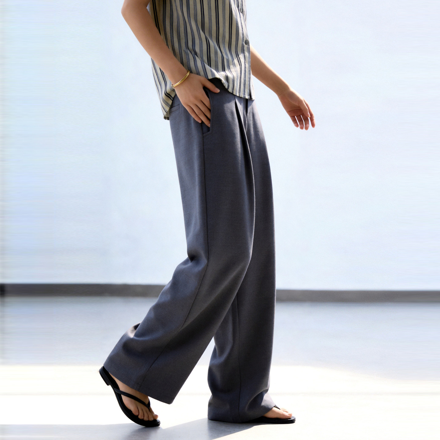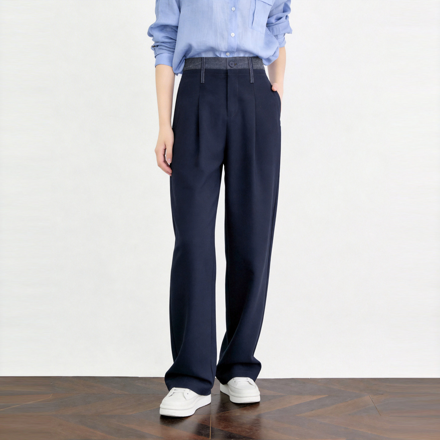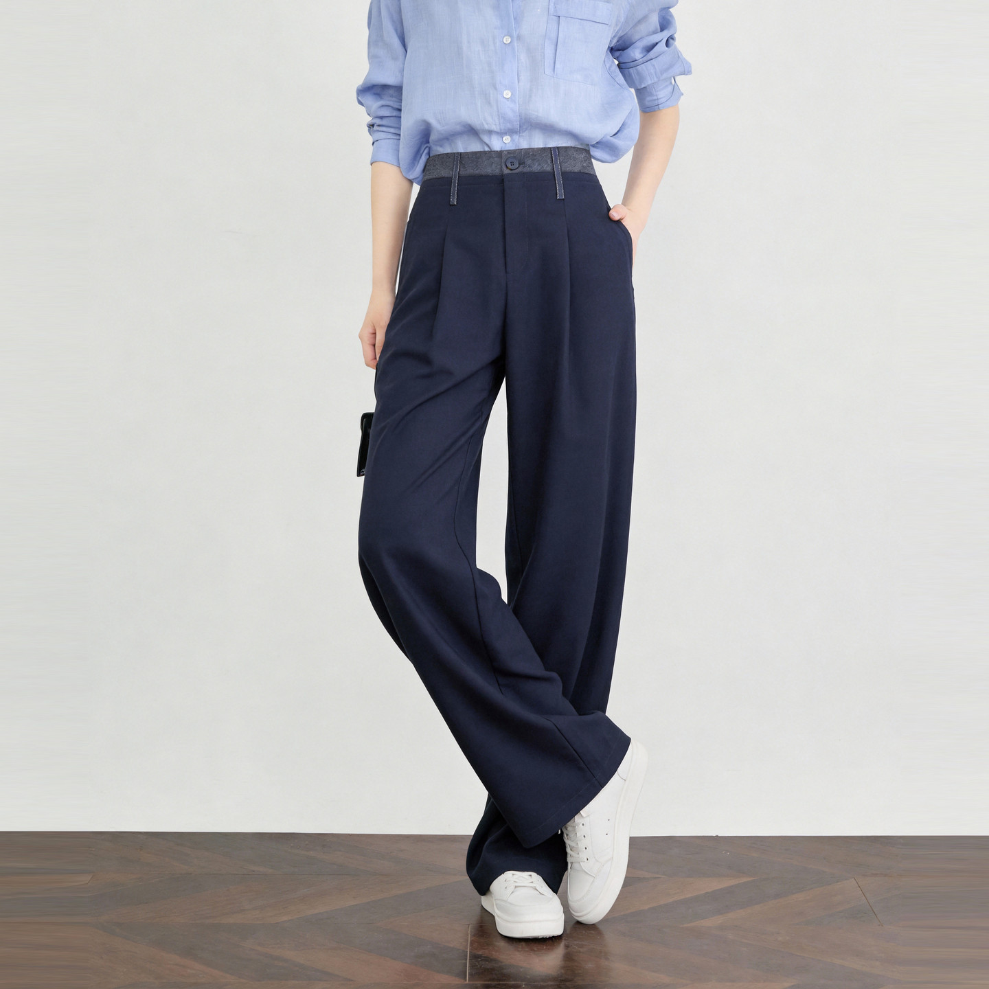 天猫BASICHOUSE女装旗舰店,Basic House/百家好藏青色宽松直筒西装裤女春季新款莱赛尔休闲裤