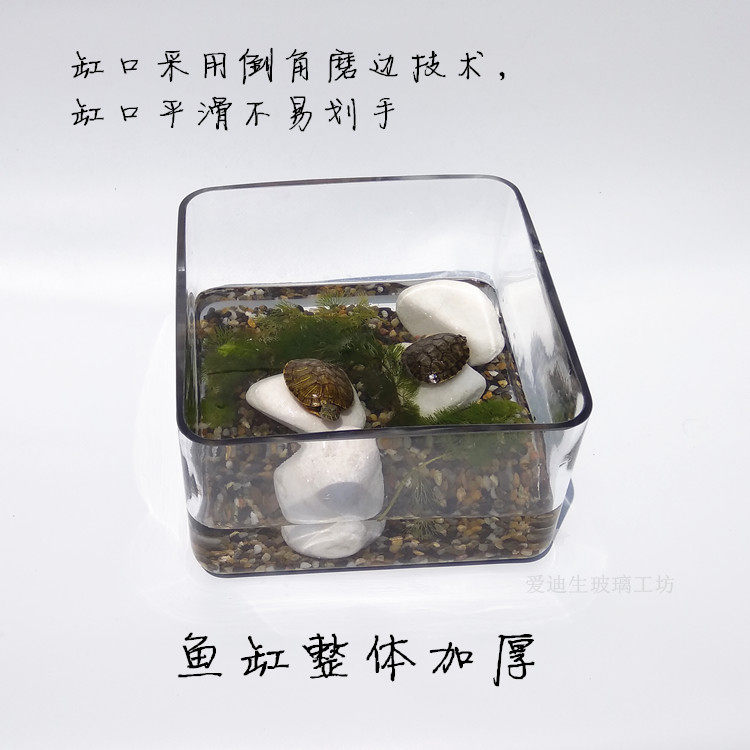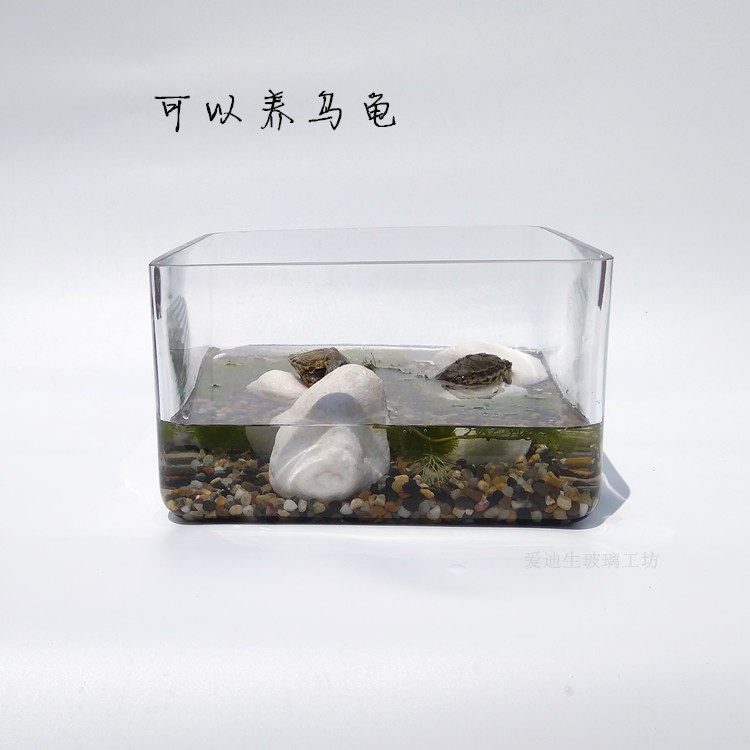 淘宝普天同庆企业店,出口矮款方形玻璃鱼缸超白玻璃乌龟缸龟盆办公客厅桌面鱼缸无粘接
