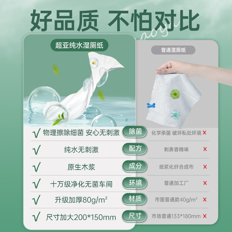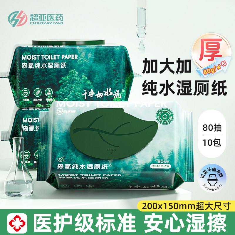 天猫超亚母婴旗舰店,超亚纯水湿厕纸家庭实惠装80抽,纯水无添加 洁净更安心 加大加厚 比纸好用