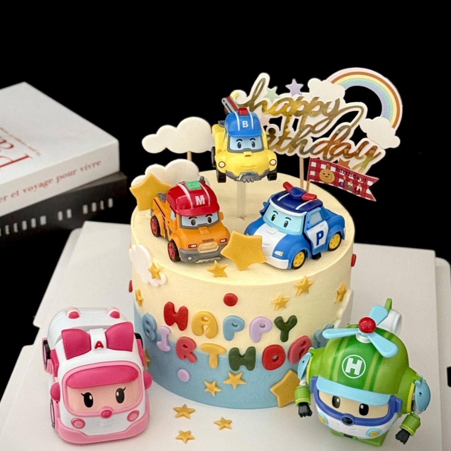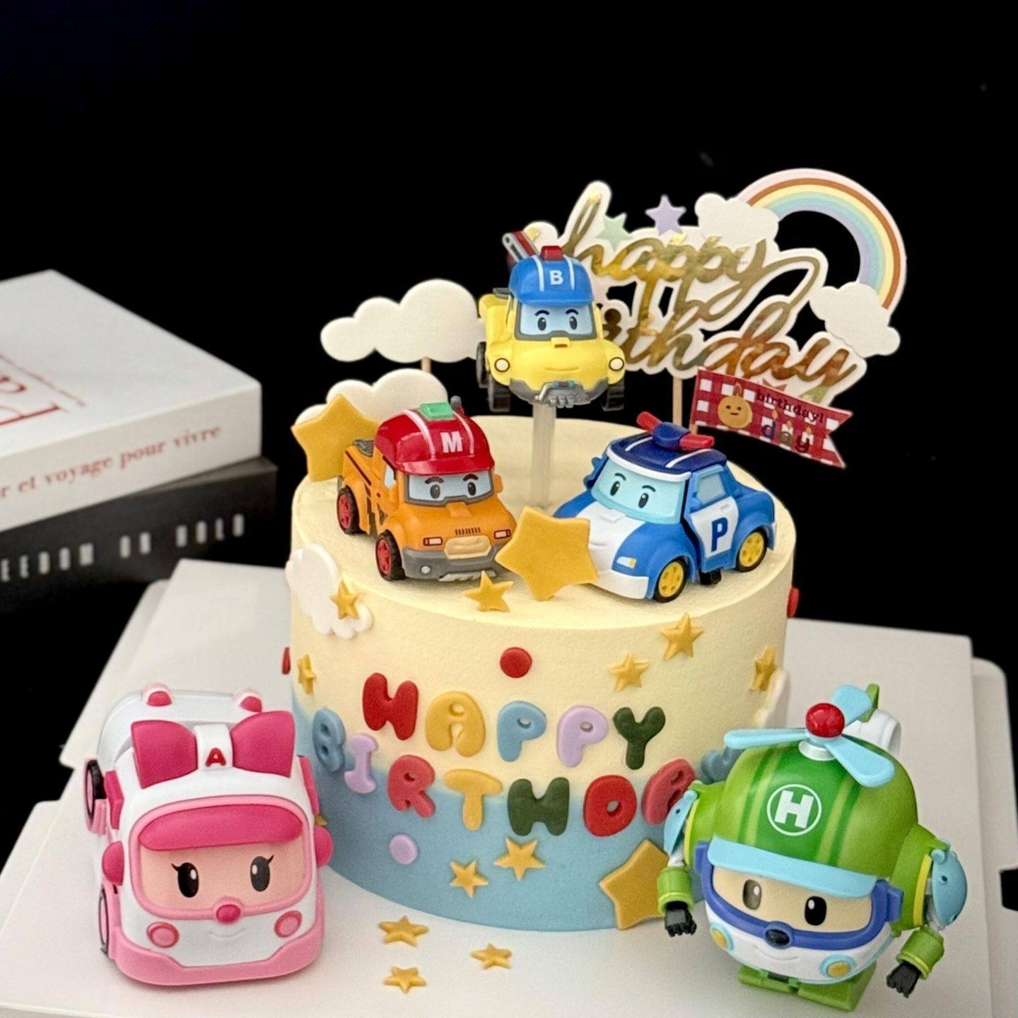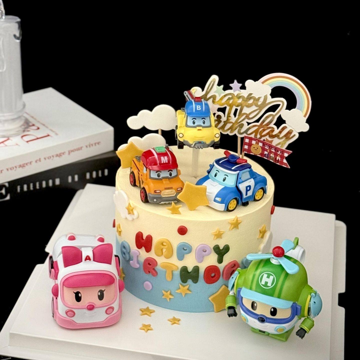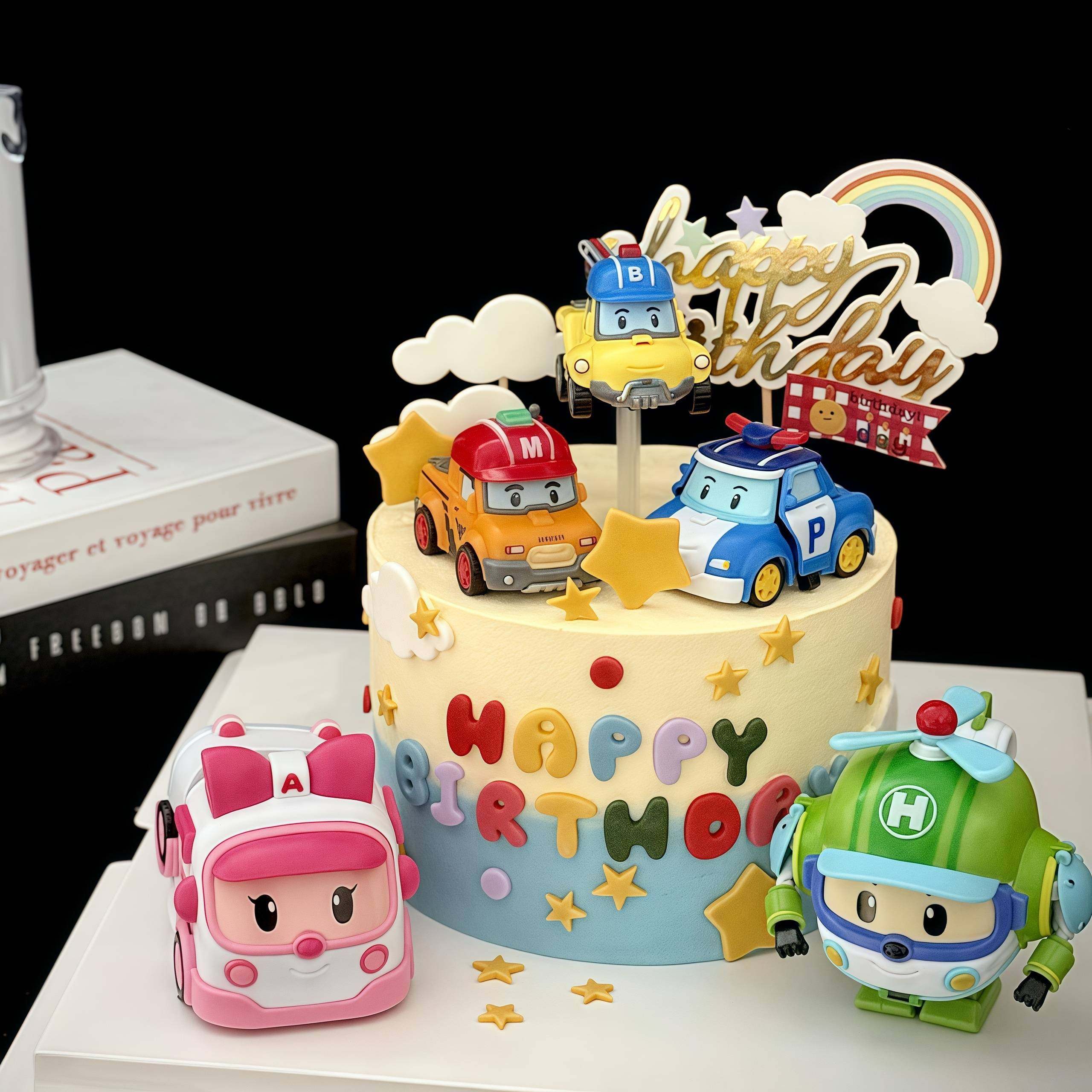 淘宝天野烘焙,可变形警车蛋糕装饰卡通救护车直升机汽车儿童生日甜品台装扮摆件