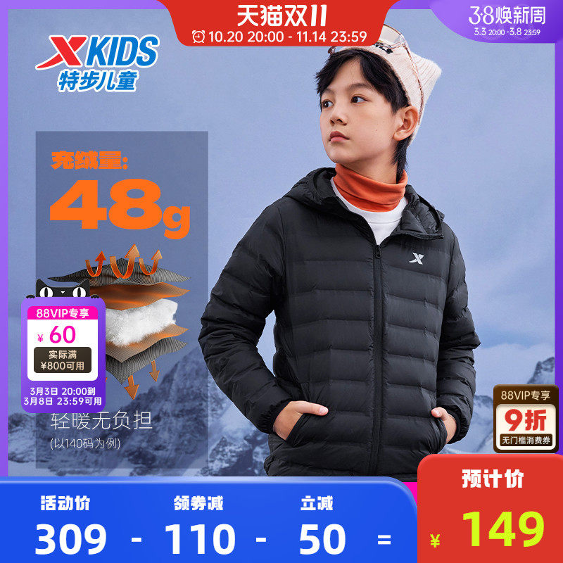 天猫特步童装旗舰店,特步童装儿童轻薄羽绒服2025秋冬新款男童保暖外套中大童上衣冬装