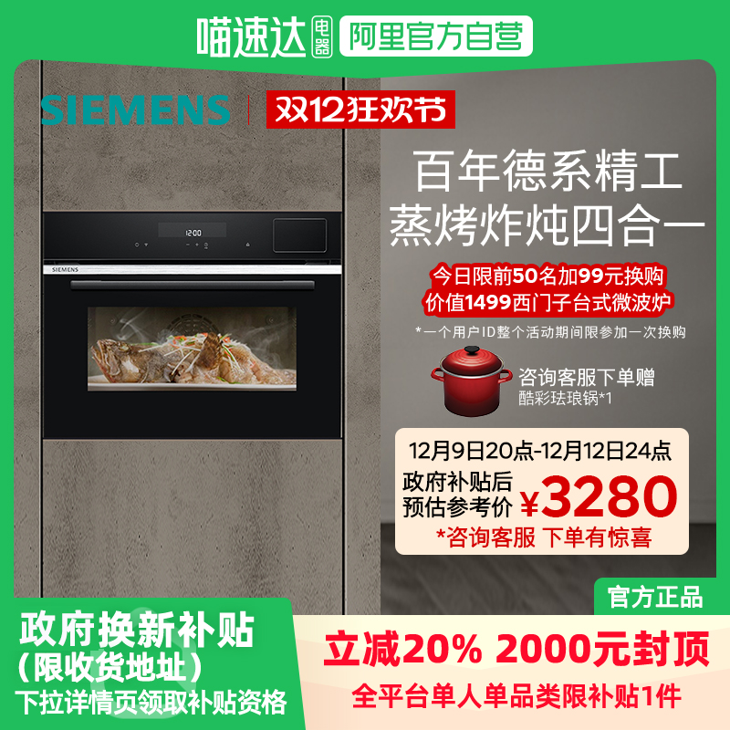 天猫喵速达电器官方旗舰店,西门子爆款智能嵌入式四合一蒸烤箱蒸烤炸炖一体机家用自清洁S6
