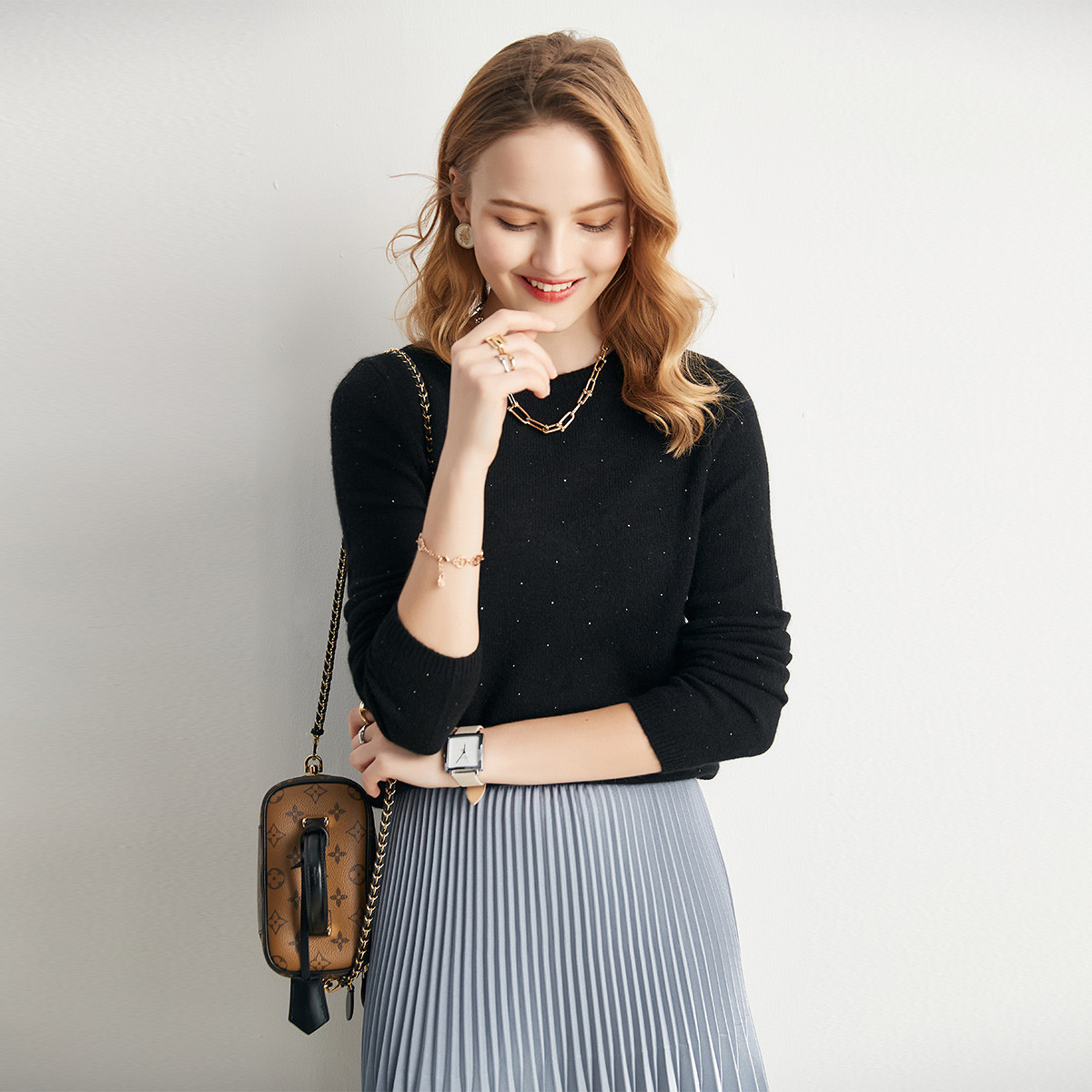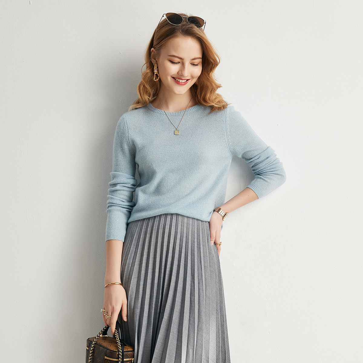 天猫帕罗官方旗舰店,女士打底时尚简约多色圆领羊绒衫,珠点亮片,轻盈保暖,甜美打底