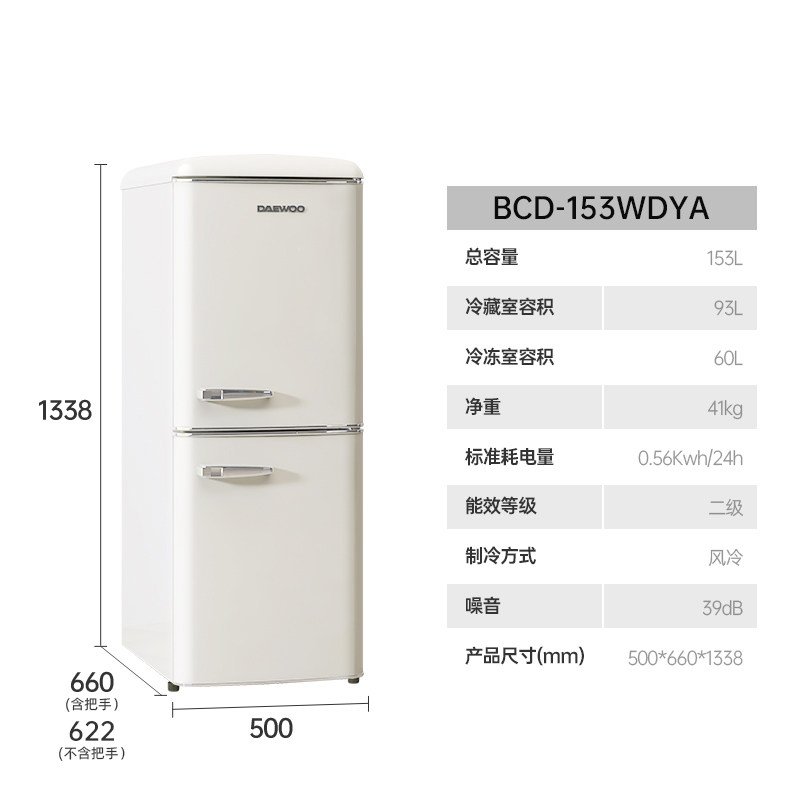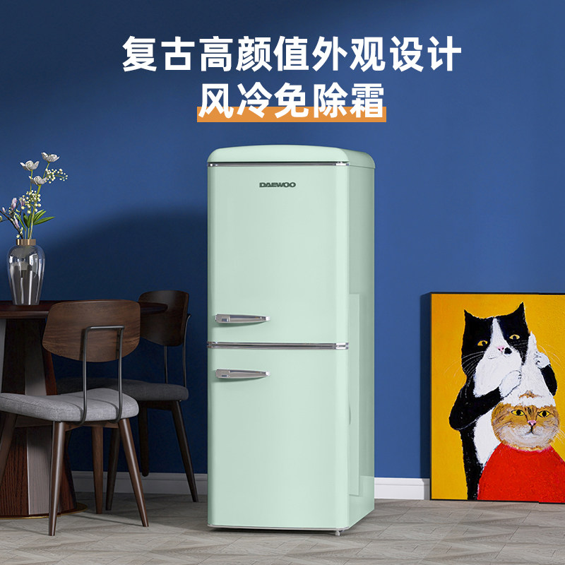 天猫DAEWOO大宇凯利专卖店,daewoo韩国大宇复古风冷小型冰箱,高颜值复古冰箱,风冷无霜153升