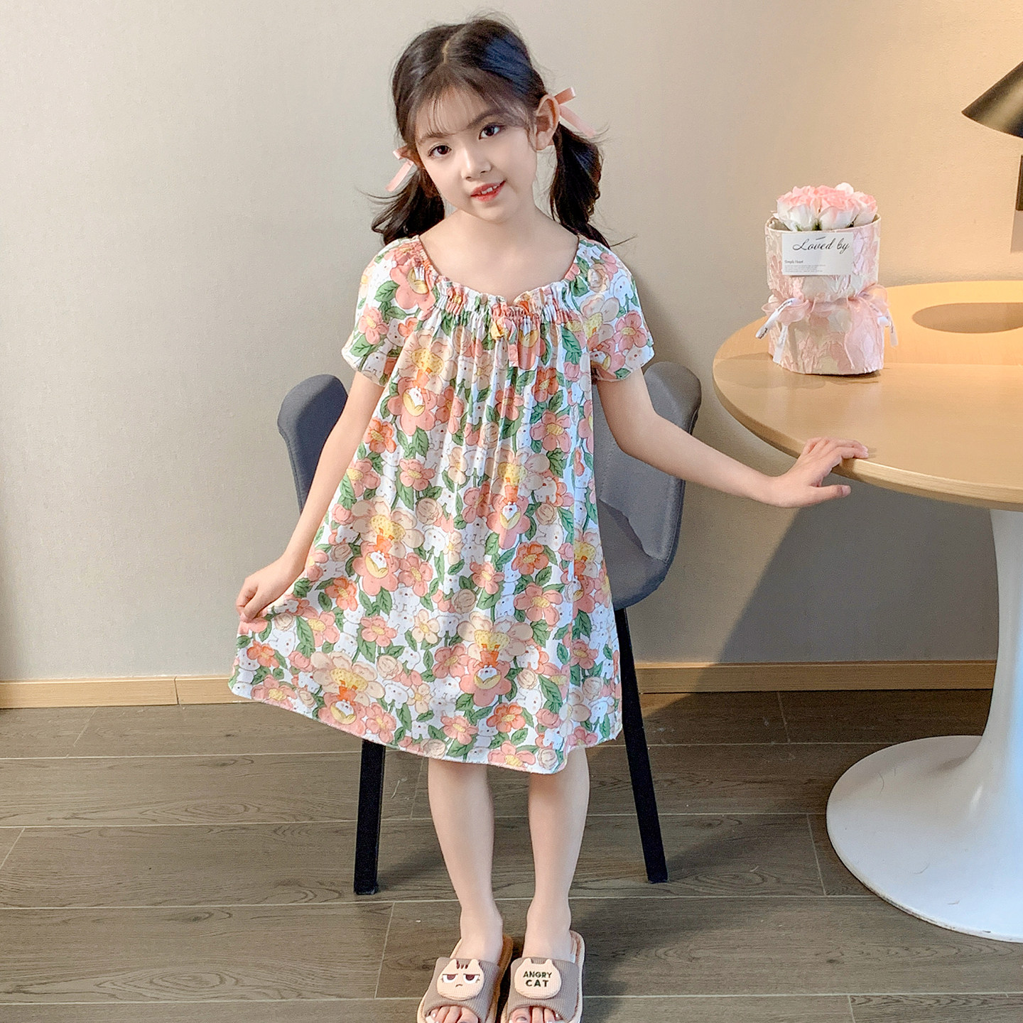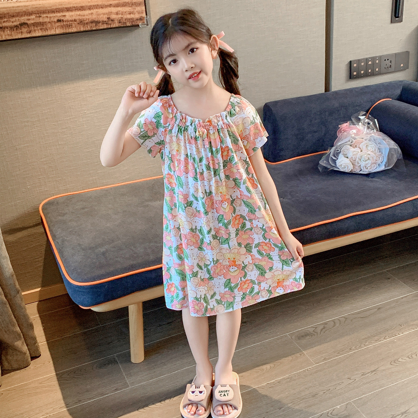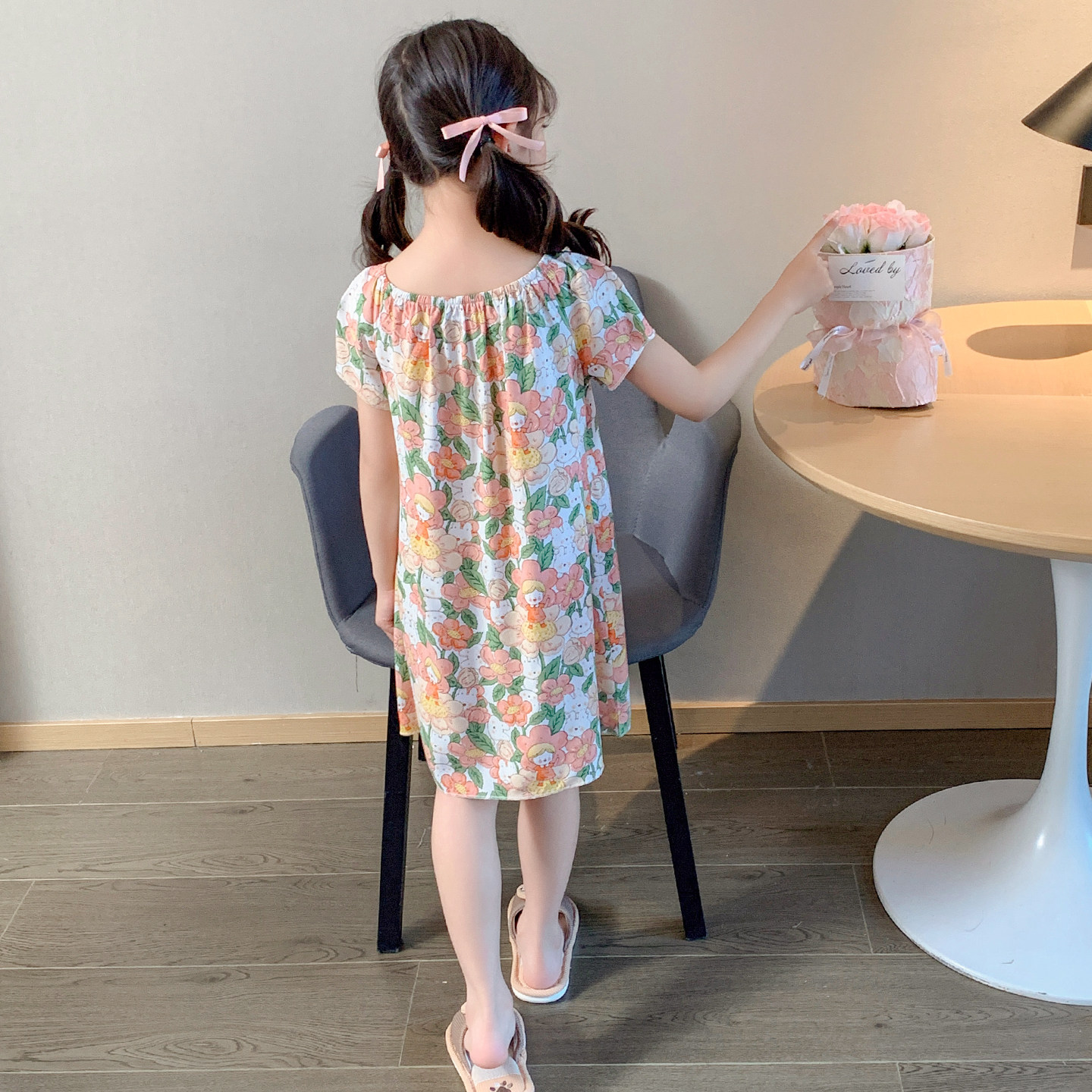 天猫诗彭旗舰店,女童绵绸短袖睡裙轻薄透气