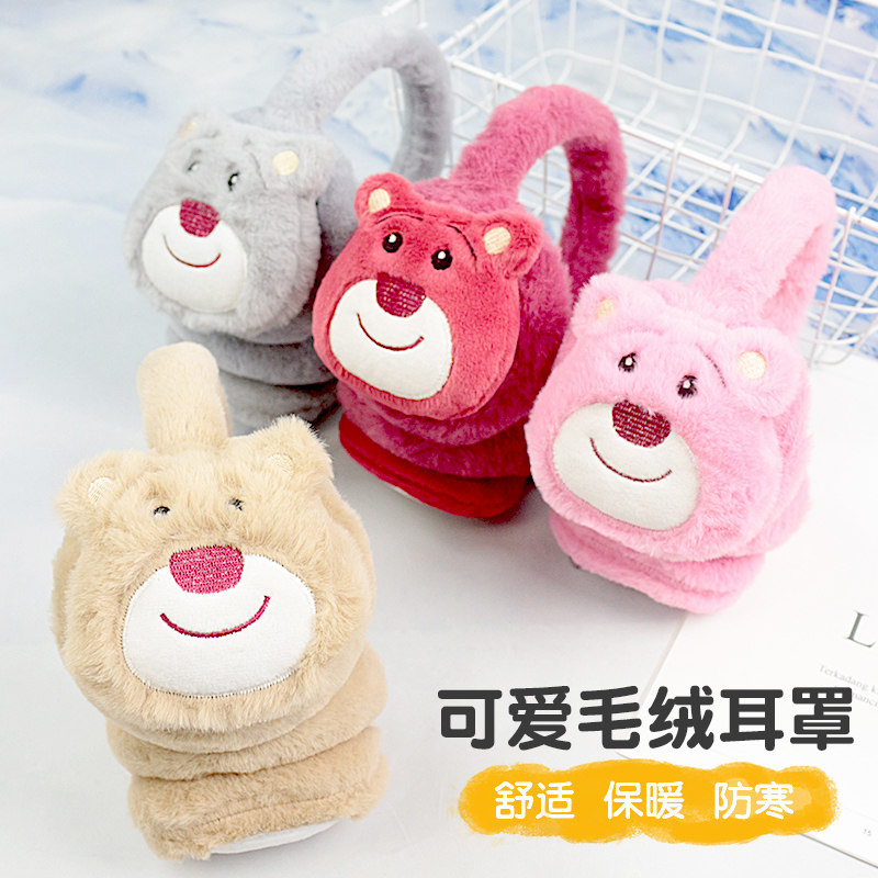 冬季保暖儿童耳套女童耳罩毛绒保暖卡通可爱草莓熊耳捂子耳罩耳包