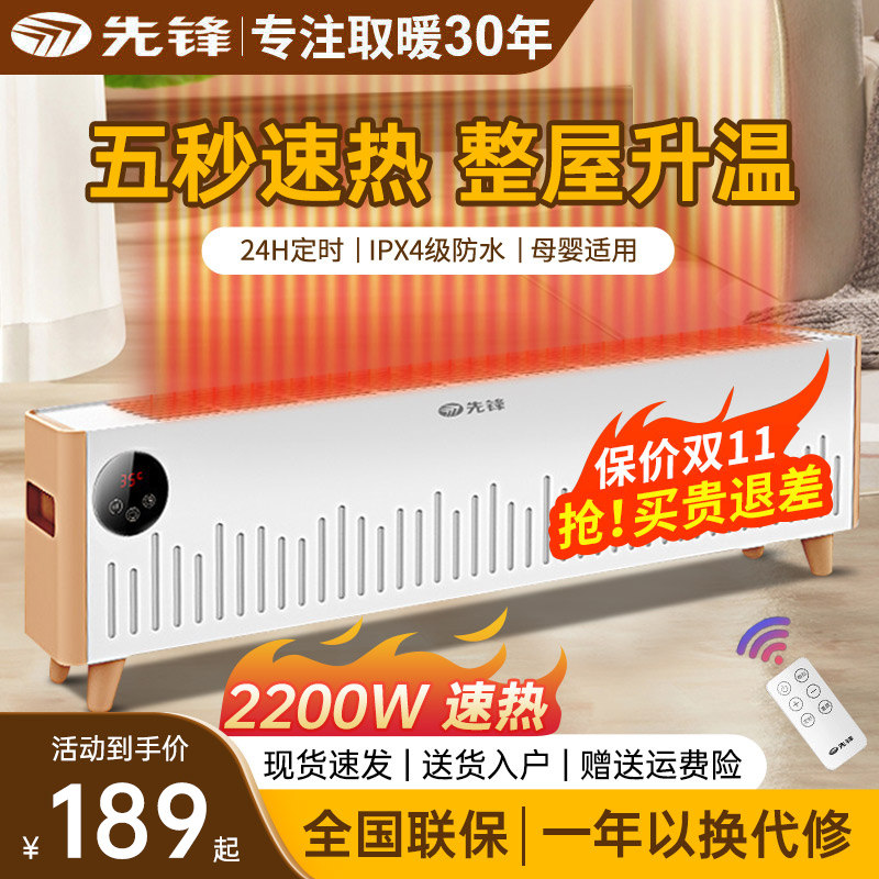 先锋踢脚线取暖器带衣架家用节能省电暖气防…
