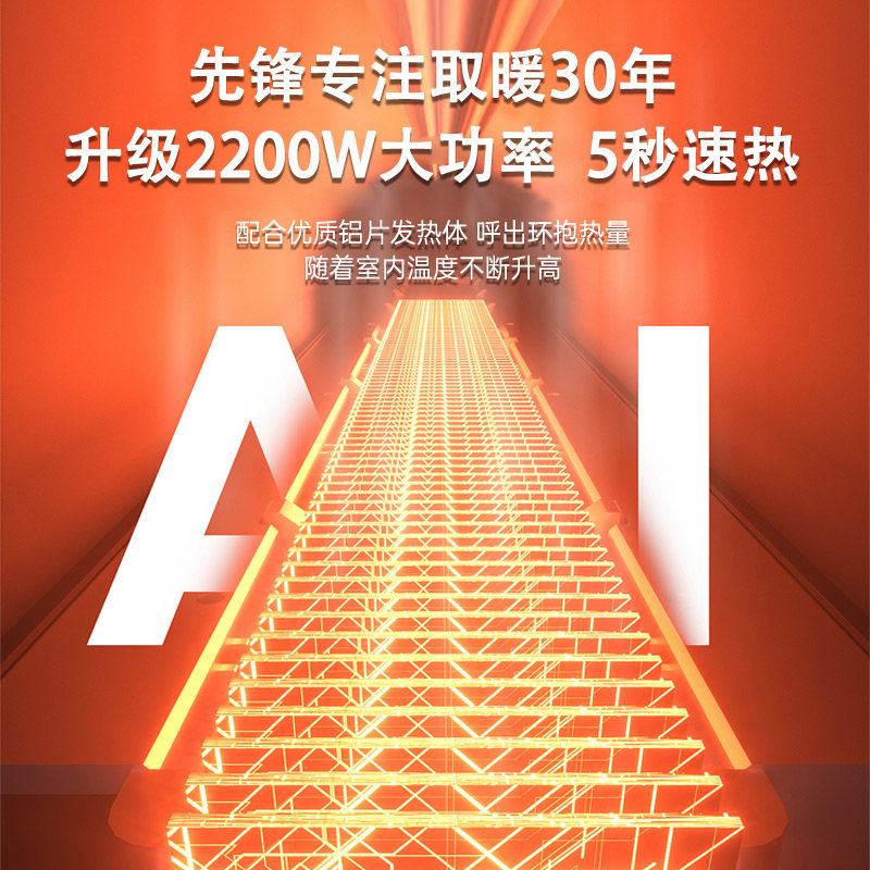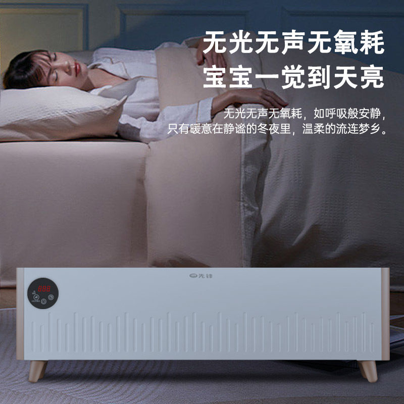 先锋石墨烯踢脚线取暖器家用客厅仿真火焰炭火加湿干衣语音电暖气