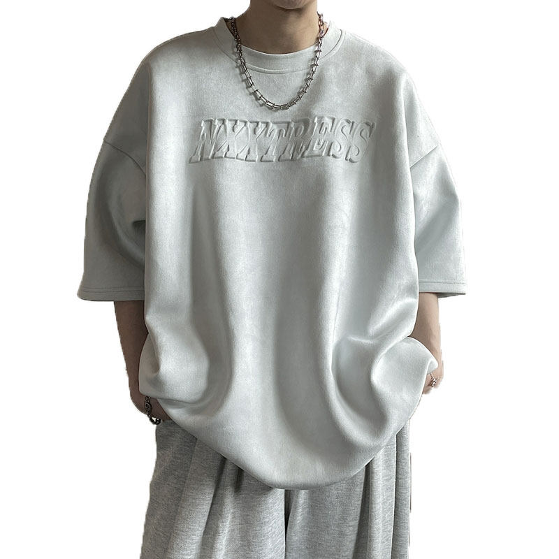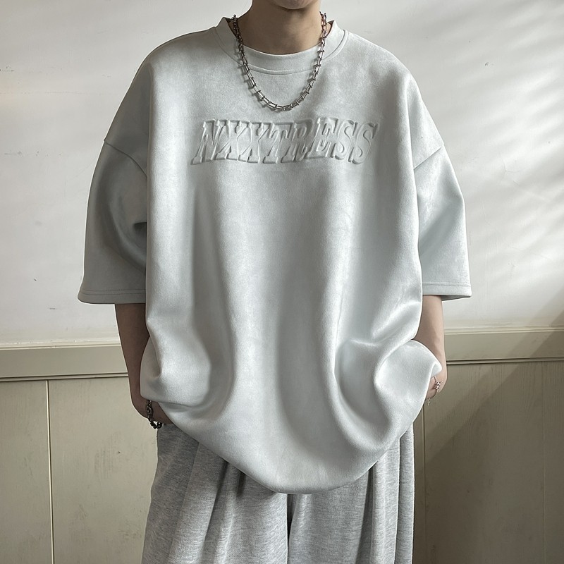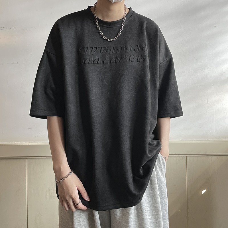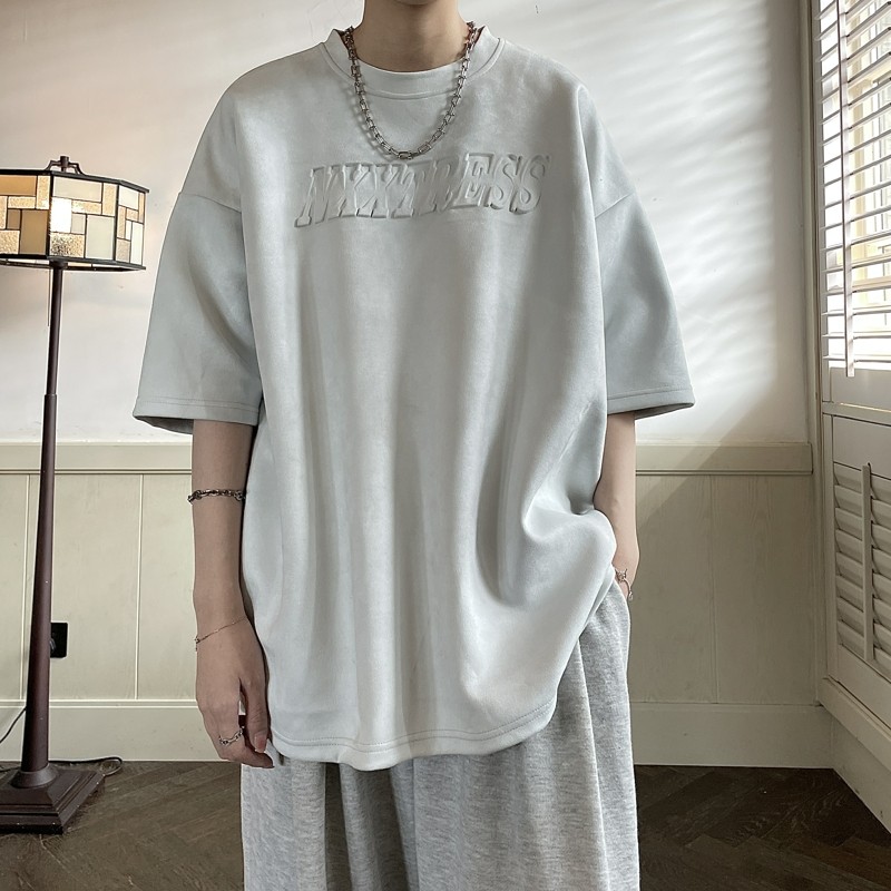 淘宝简男风向标,240g重磅压印麂皮绒短袖夏季t恤