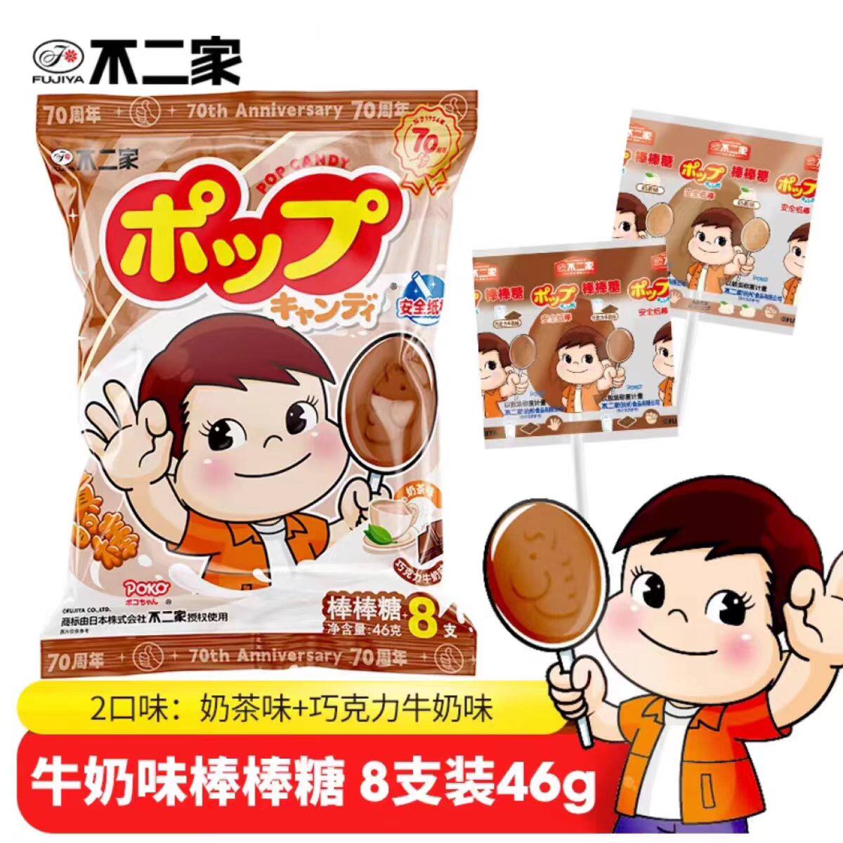 淘宝美哆进口超市 折扣裸价特卖,临期特价日本不二家巧克力牛奶味棒棒糖8枚儿童休闲糖果
