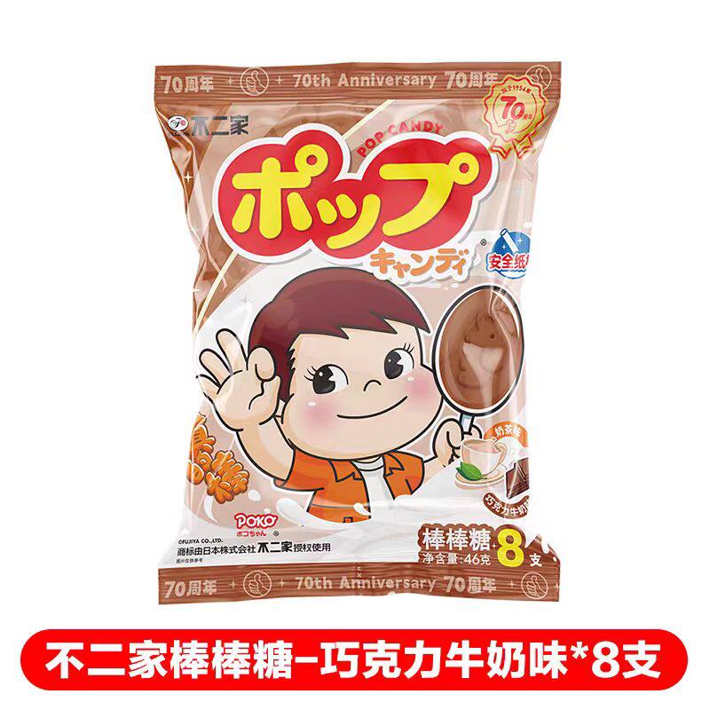临期特价日本不二家巧克力牛奶味棒棒糖8枚儿童休闲糖果