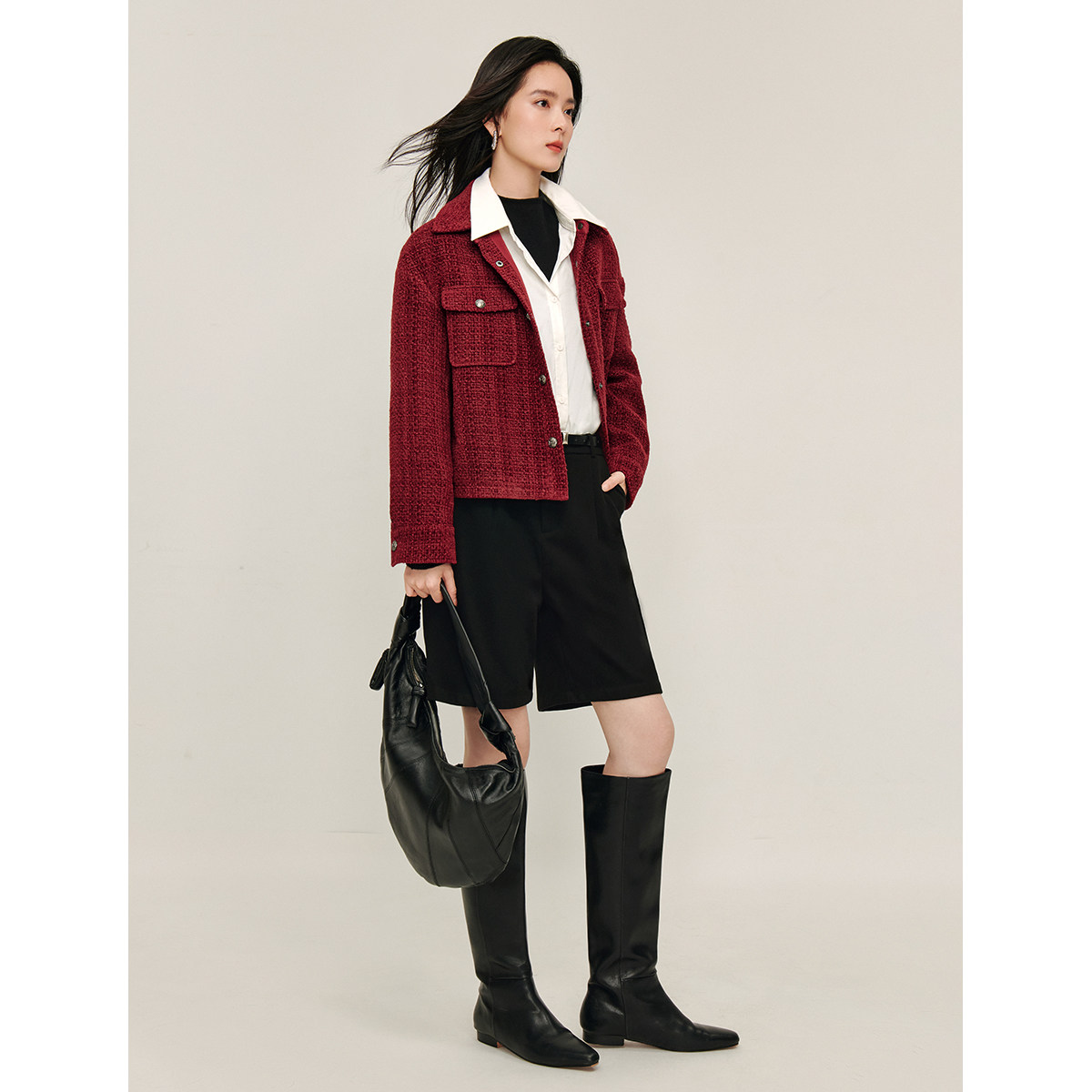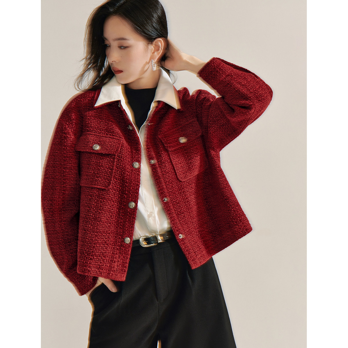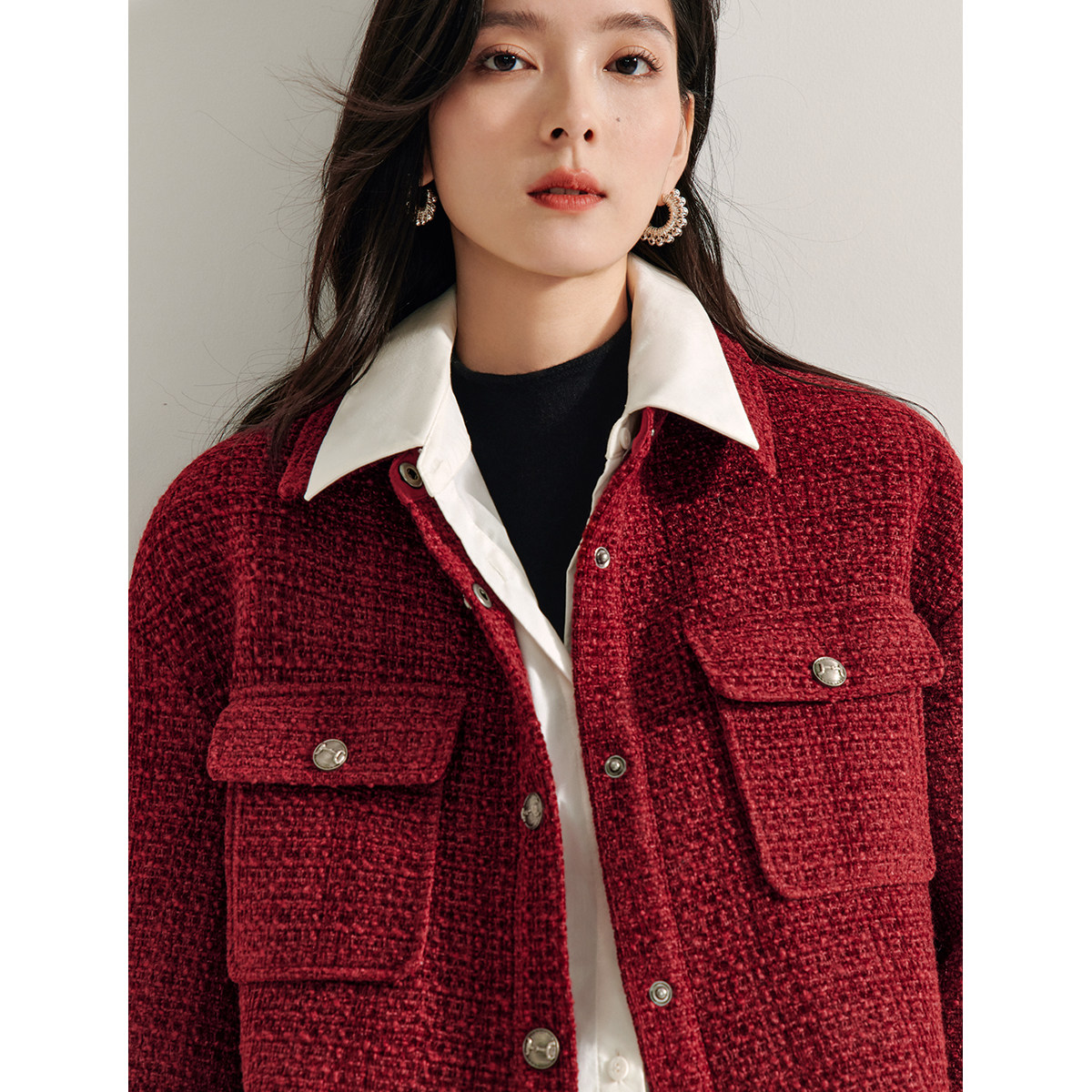 淘宝妖精的口袋直营正品折扣店,茵曼红色小香风羊毛粗花呢外套女