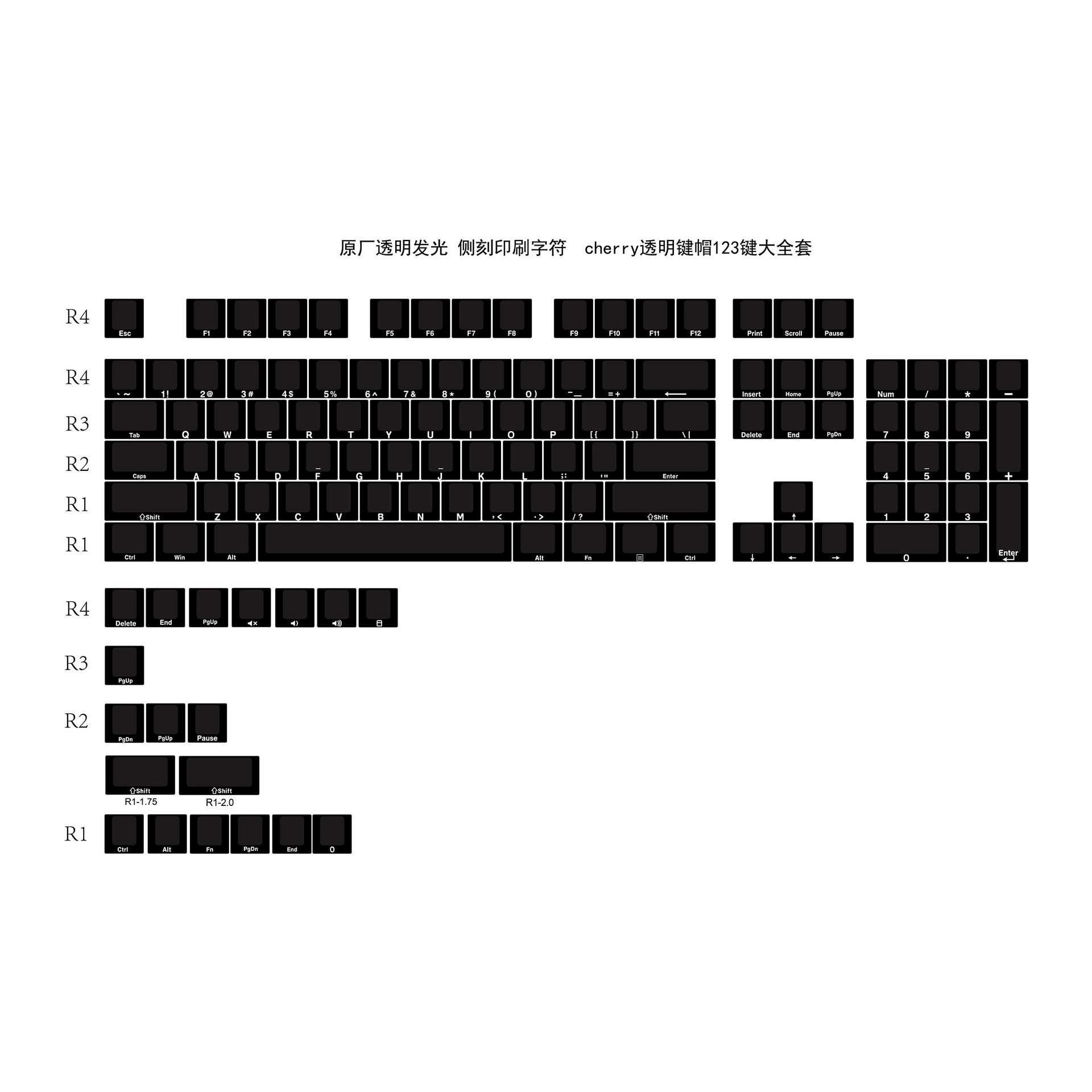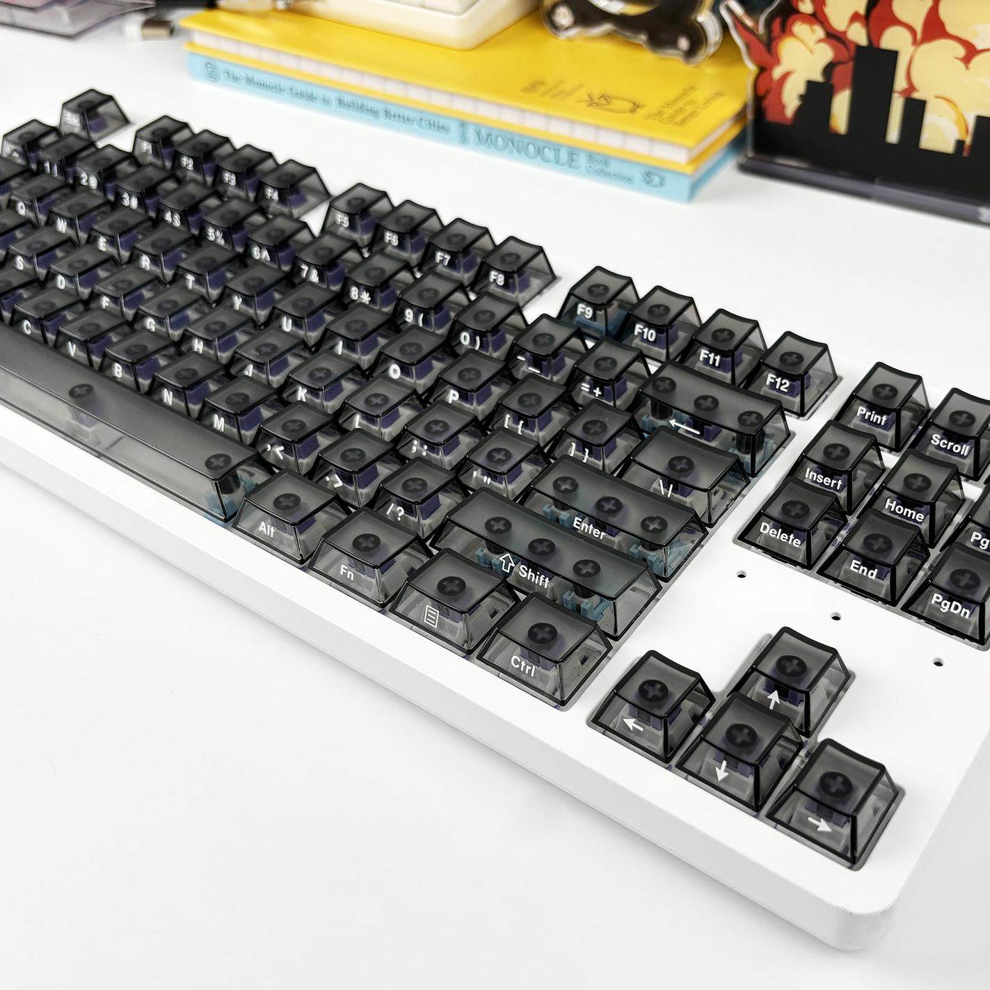 淘宝FLESPORTS外设,侧刻透明键帽白雾黑PC材质原厂高度小全套无加强筋透明键帽冰晶键