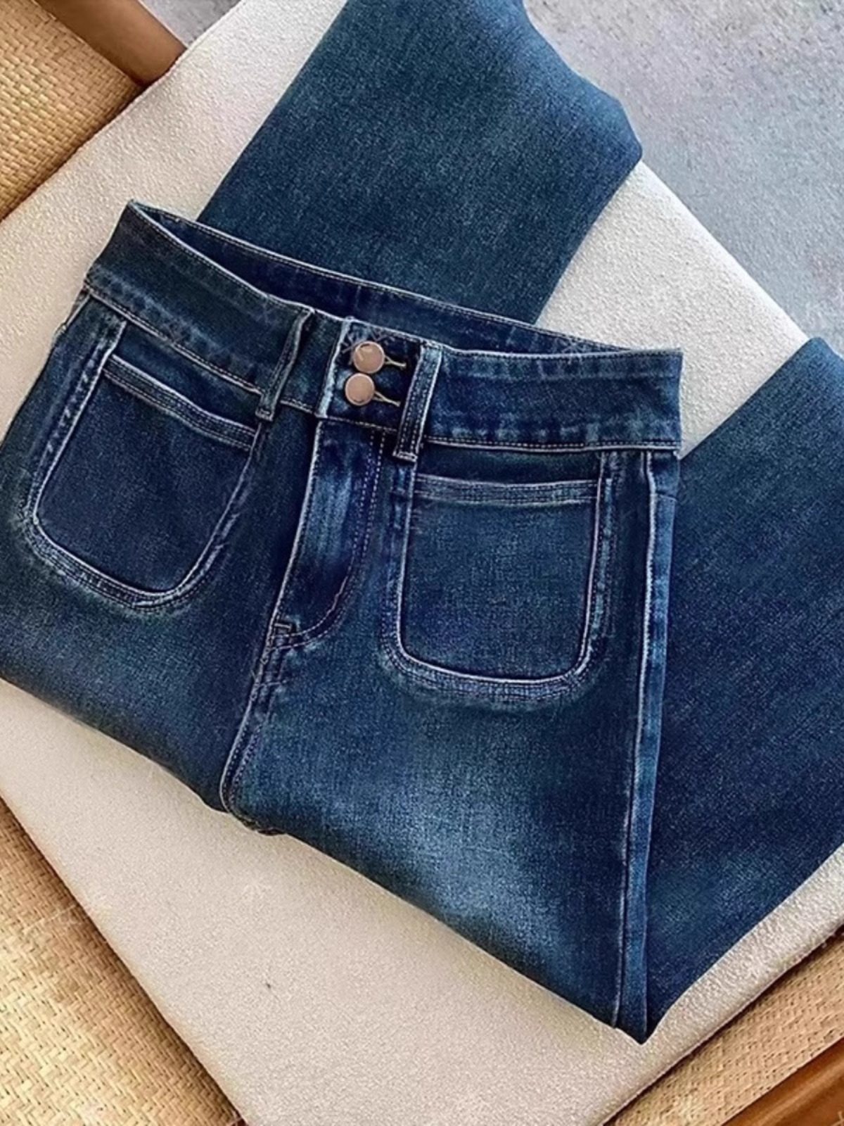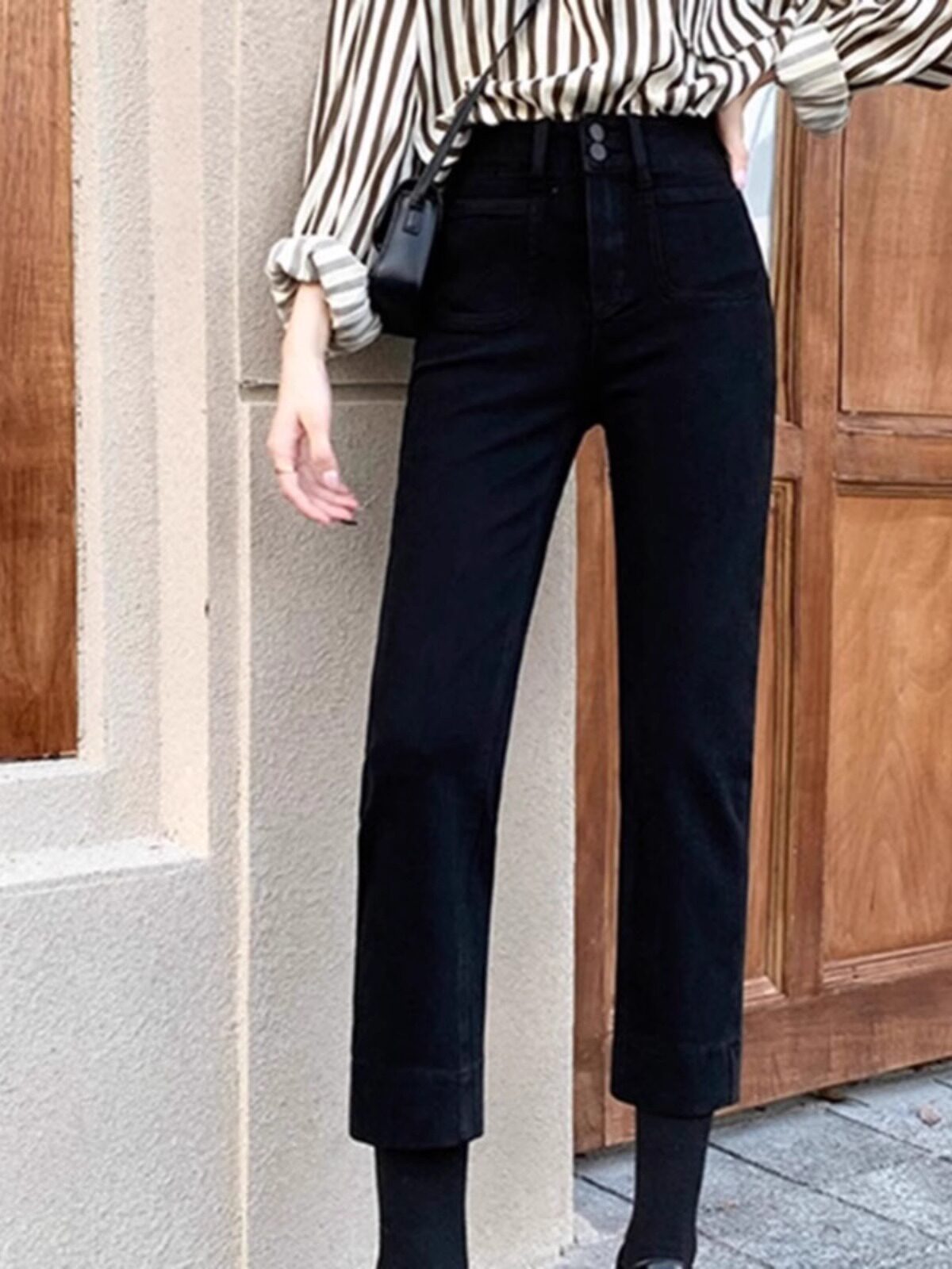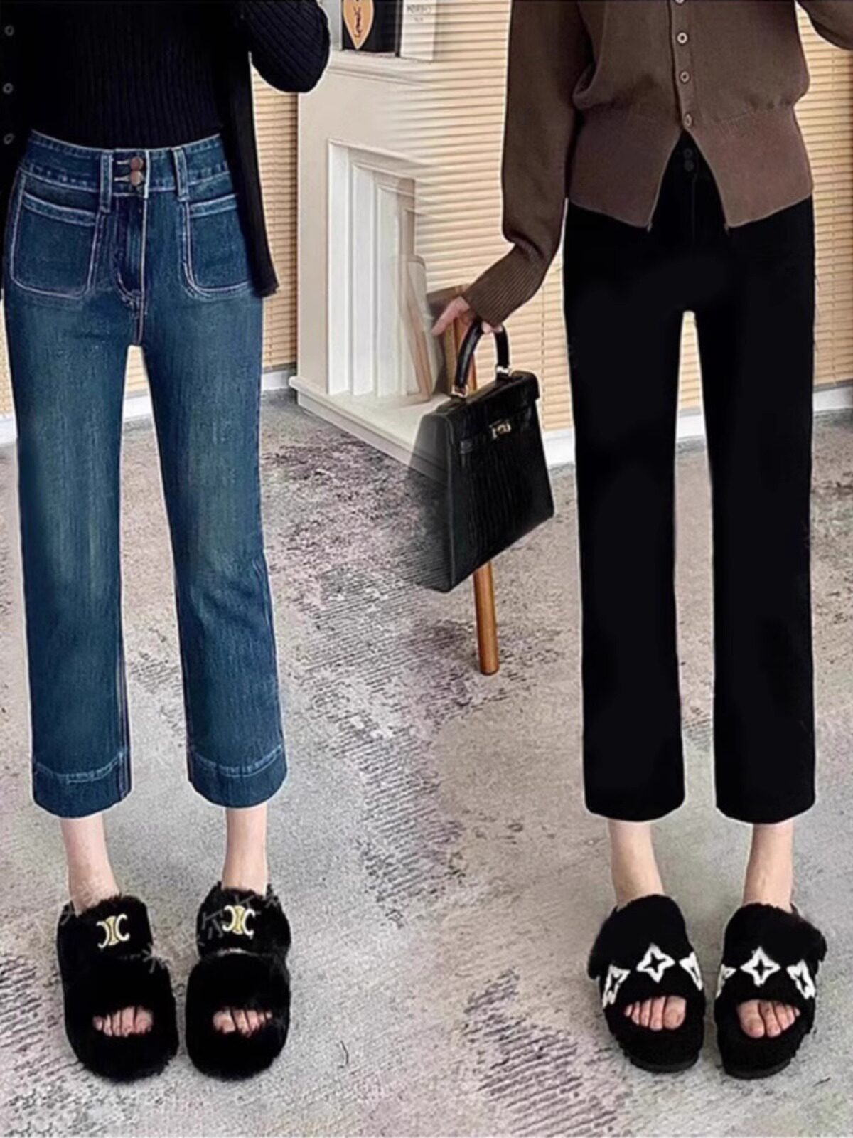 淘宝非衣轩蕾大码女装,秋冬新款大码直筒加绒牛仔裤女胖妹妹mm梨形身材弹力显瘦烟管裤子