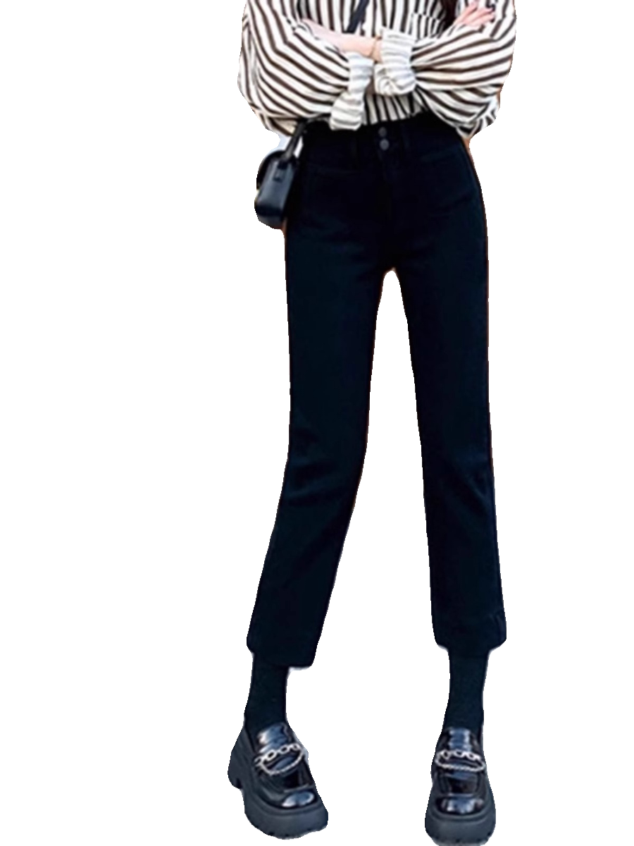 秋冬新款大码直筒加绒牛仔裤女胖妹妹mm梨形身材弹力显瘦烟管裤子