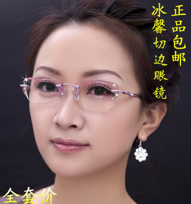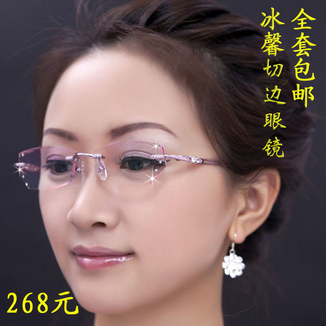 切边眼镜片超薄超韧防蓝光1.61非球面近视女无框钻石渐变色老花轻