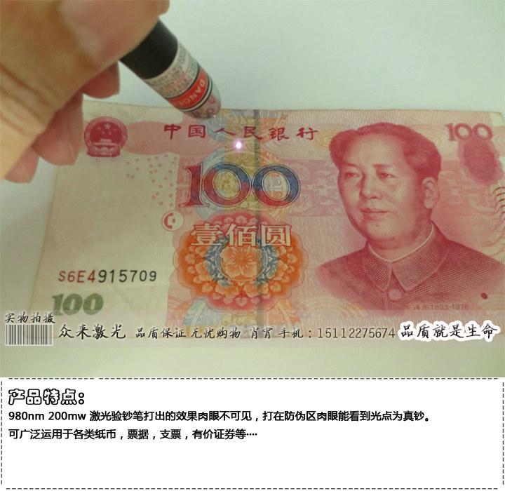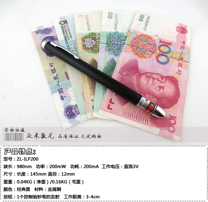 淘宝众来深湛激光红外线定位灯,980nm200mw激光验钞笔红外防伪可笔