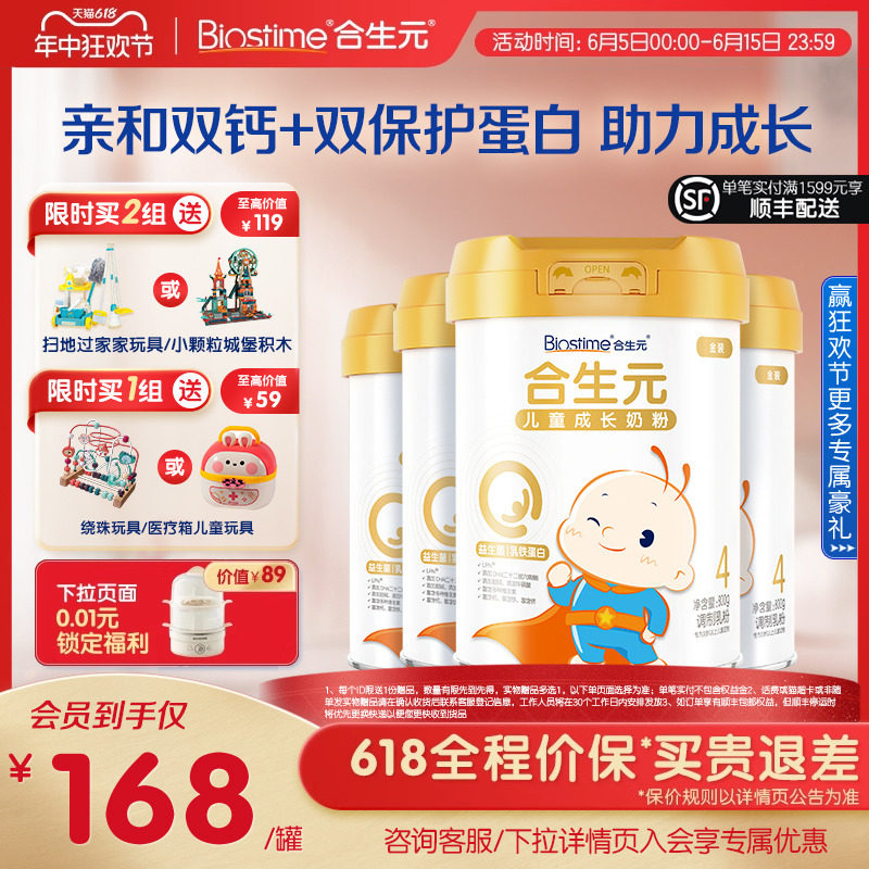 天猫合生元官方旗舰店,618狂欢节|合生元儿童成长配方牛奶粉金装800g4罐助力成长发育