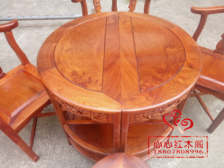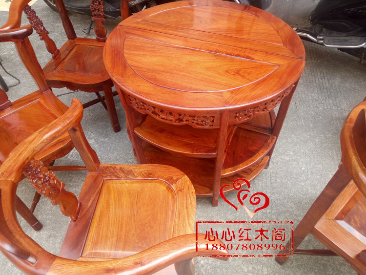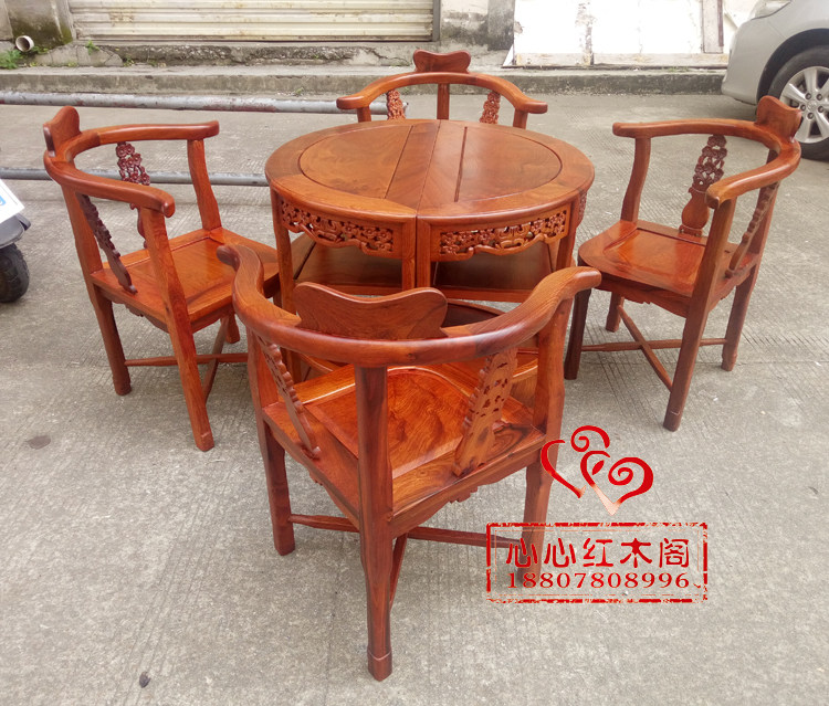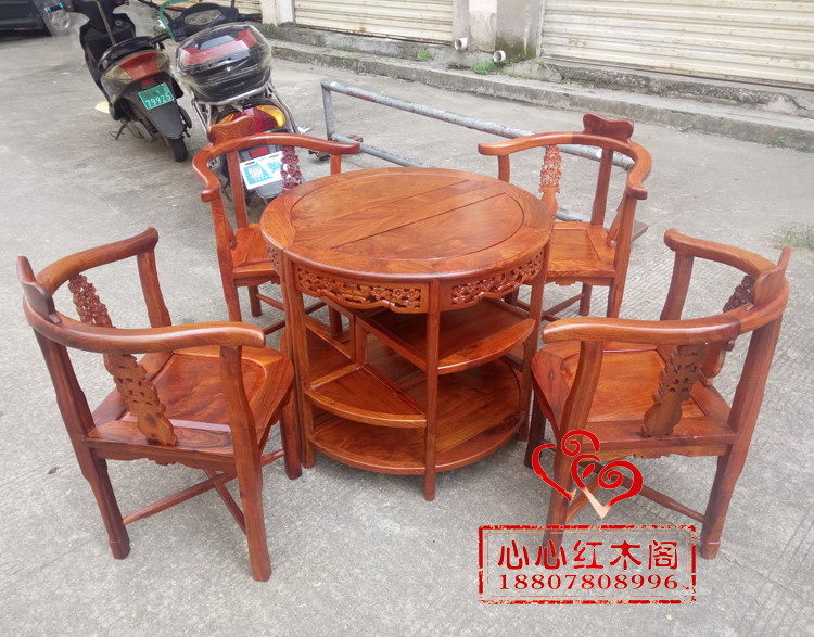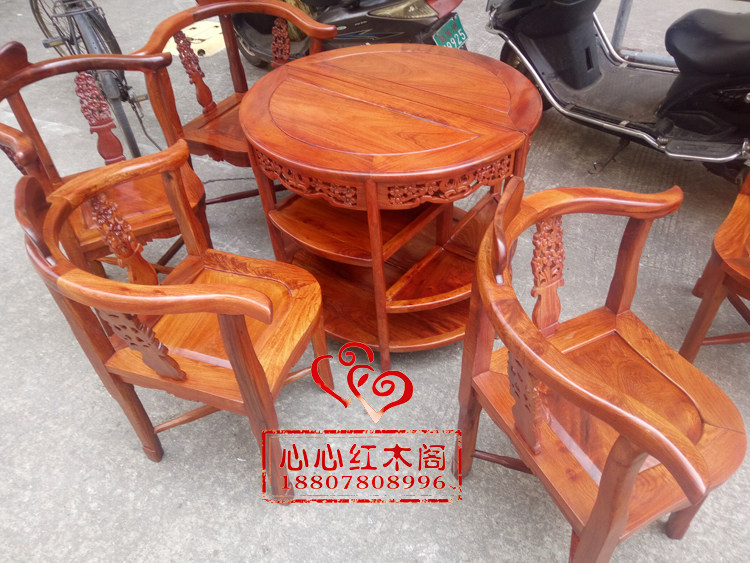 淘宝心心红木阁,红木家具实木清明古典缅甸花梨木咖啡桌5件套桌椅茶几组合餐桌