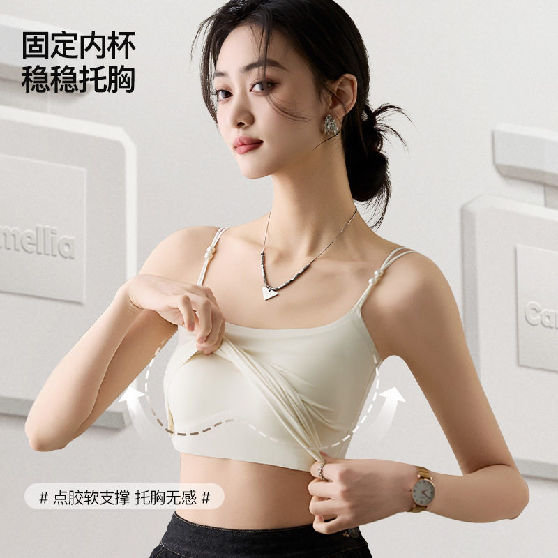 天猫衿晢旗舰店,YY山茶花香吊带背心免穿内衣女一体式文胸夏季凉感无痕超薄珍珠