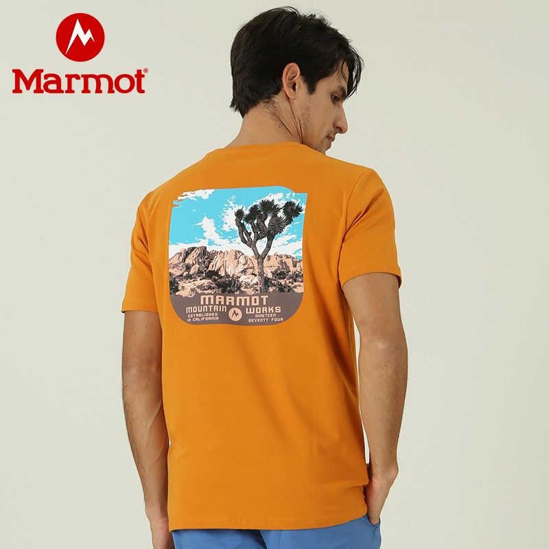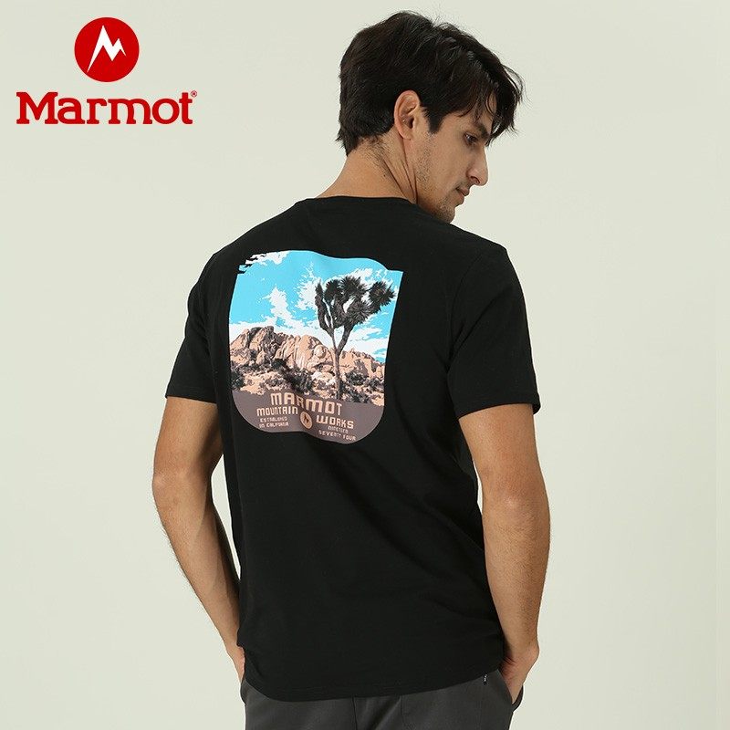 淘宝环博瑞鑫户外运动企业店,Marmot土拨鼠夏季特惠户外质感棉料休闲透气百搭男棉短袖T恤