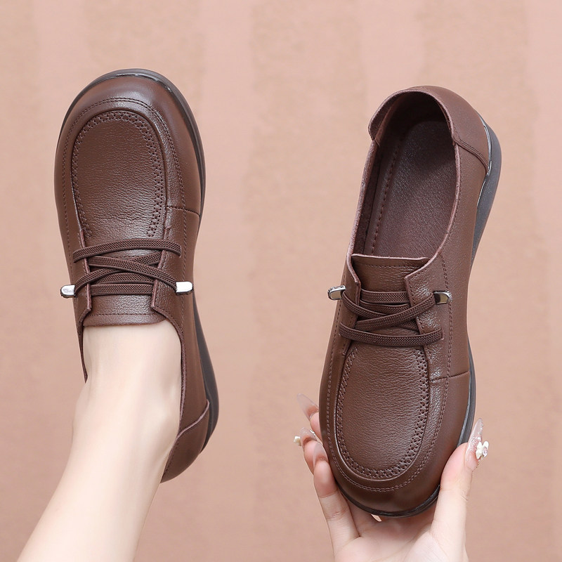 天猫盈梦旗舰店,真皮软底一脚蹬妈妈单鞋,头层牛皮鞋面 防滑耐磨软底 送运费险