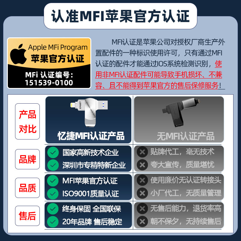天猫忆捷和创专卖店,【MFI认证】苹果手机电脑两用U盘