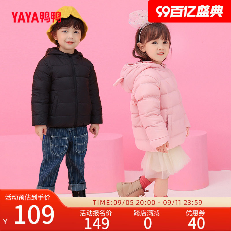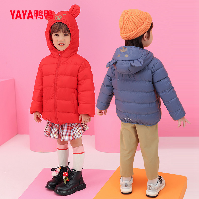 天猫鸭鸭官方旗舰店,鸭鸭童装羽绒服男女宝宝短款外套,轻薄保暖,纯色可爱