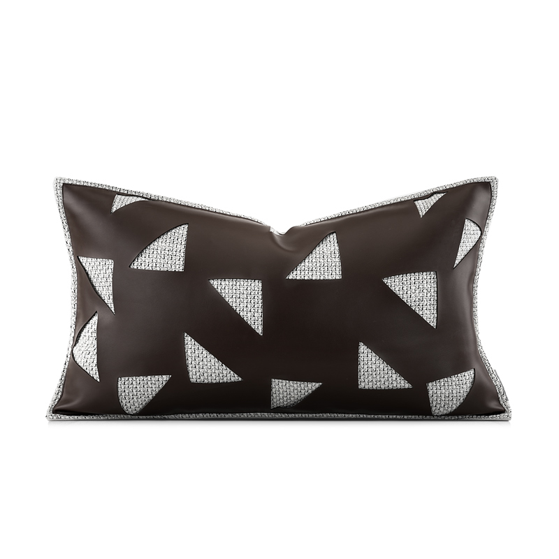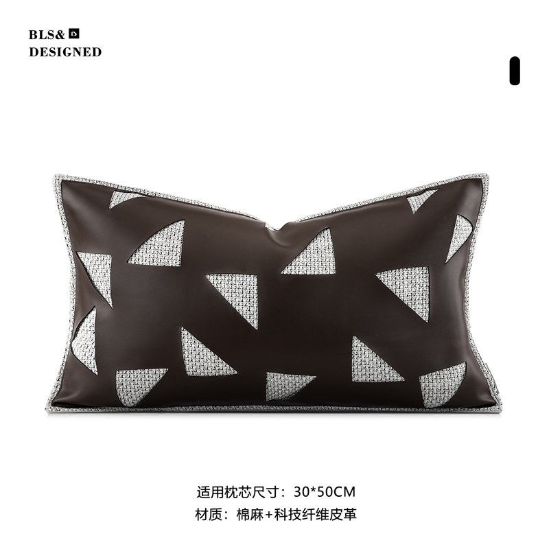 天猫柏洛斯家居旗舰店,柏洛斯客厅卧室沙发靠枕2023新品,咖黑系皮革镂空设计 棉麻透气拼接皮革肌理