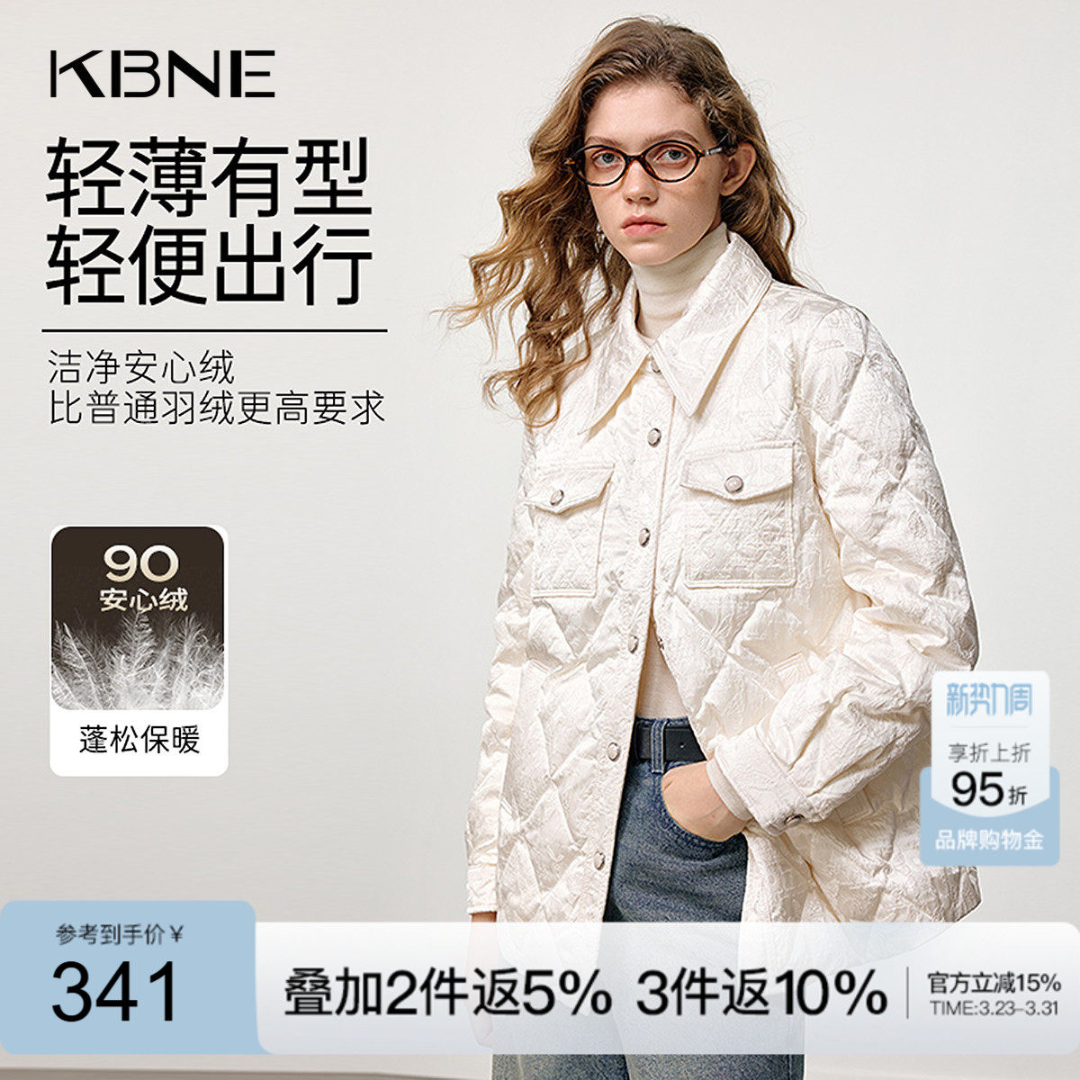 淘宝KBNE女装店,KBNE轻薄小香风气质白色羽绒服2025新款秋冬外套防风保暖上衣女