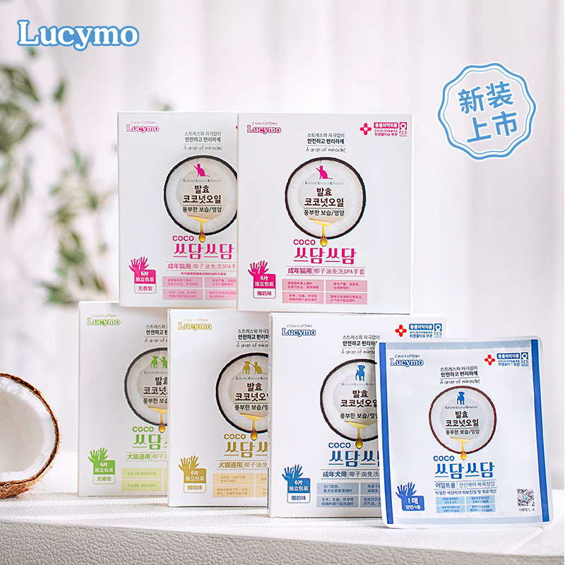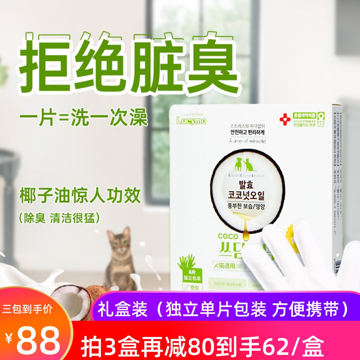 韩国LUCYMO椰子油宠物免洗手套猫咪狗狗除臭洗澡湿巾干洗清洁神器