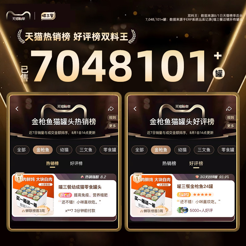 天猫喵三餐旗舰店,猫罐头补水营养增肥买一箱送一箱
