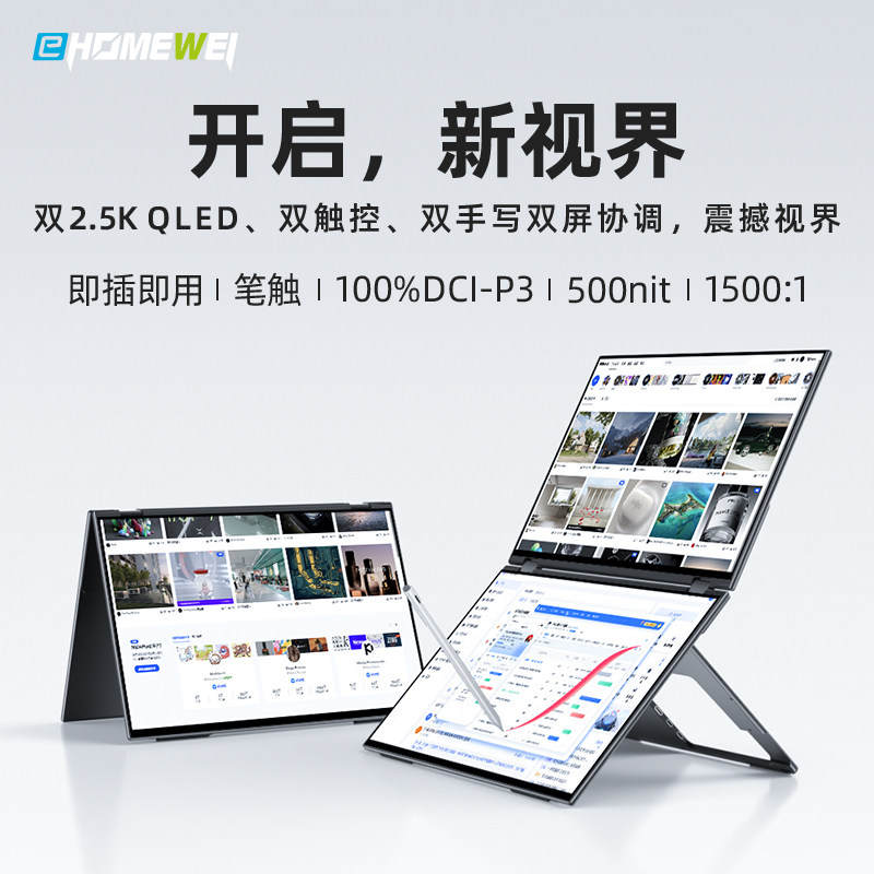 天猫ehomewei旗舰店,Ehomewei可折叠双屏办公便携屏,双屏触控 虚拟键盘 免驱动 双2.5K
