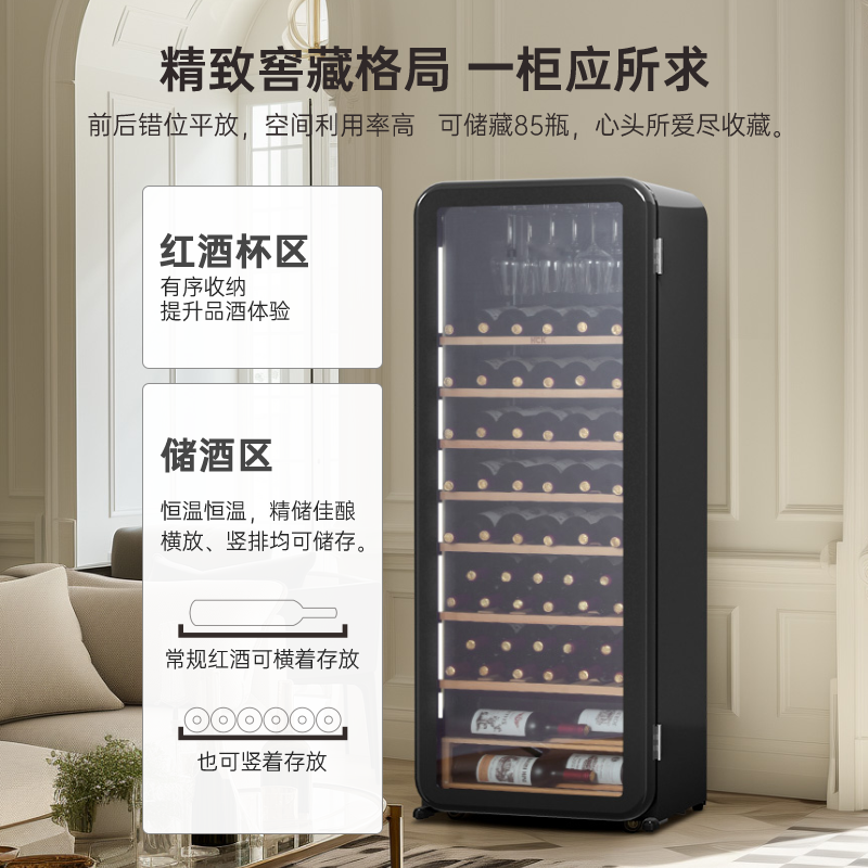 天猫哈士奇家用电器旗舰店,hck哈士奇208r圆弧红酒柜客厅,80度复古圆弧 4~22℃温区 晒图评价有惊喜