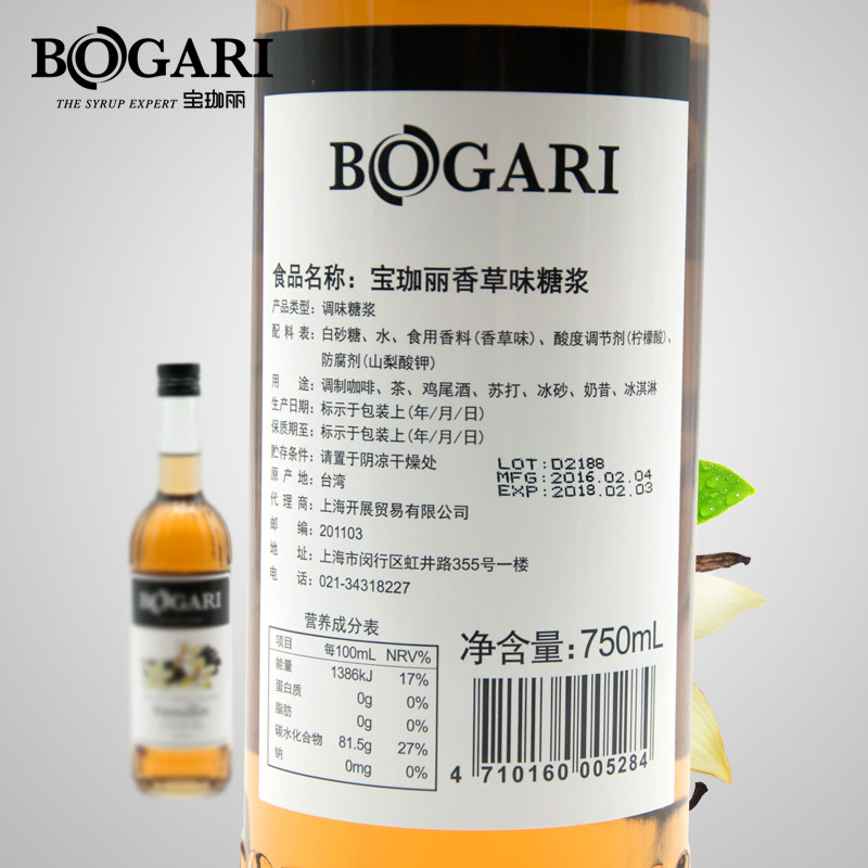 天猫圣楚食品专营店,bogari /宝珈丽香草风味进口糖浆,调酒饮品 2瓶送 压嘴1个 赠品不叠加