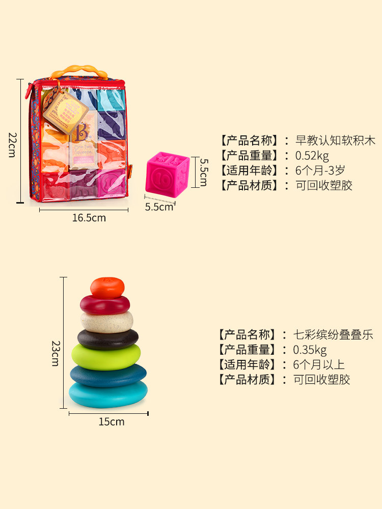 淘宝宝宝爸爸的海淘铺子,美国b . toys比乐七彩叠叠圈软积木