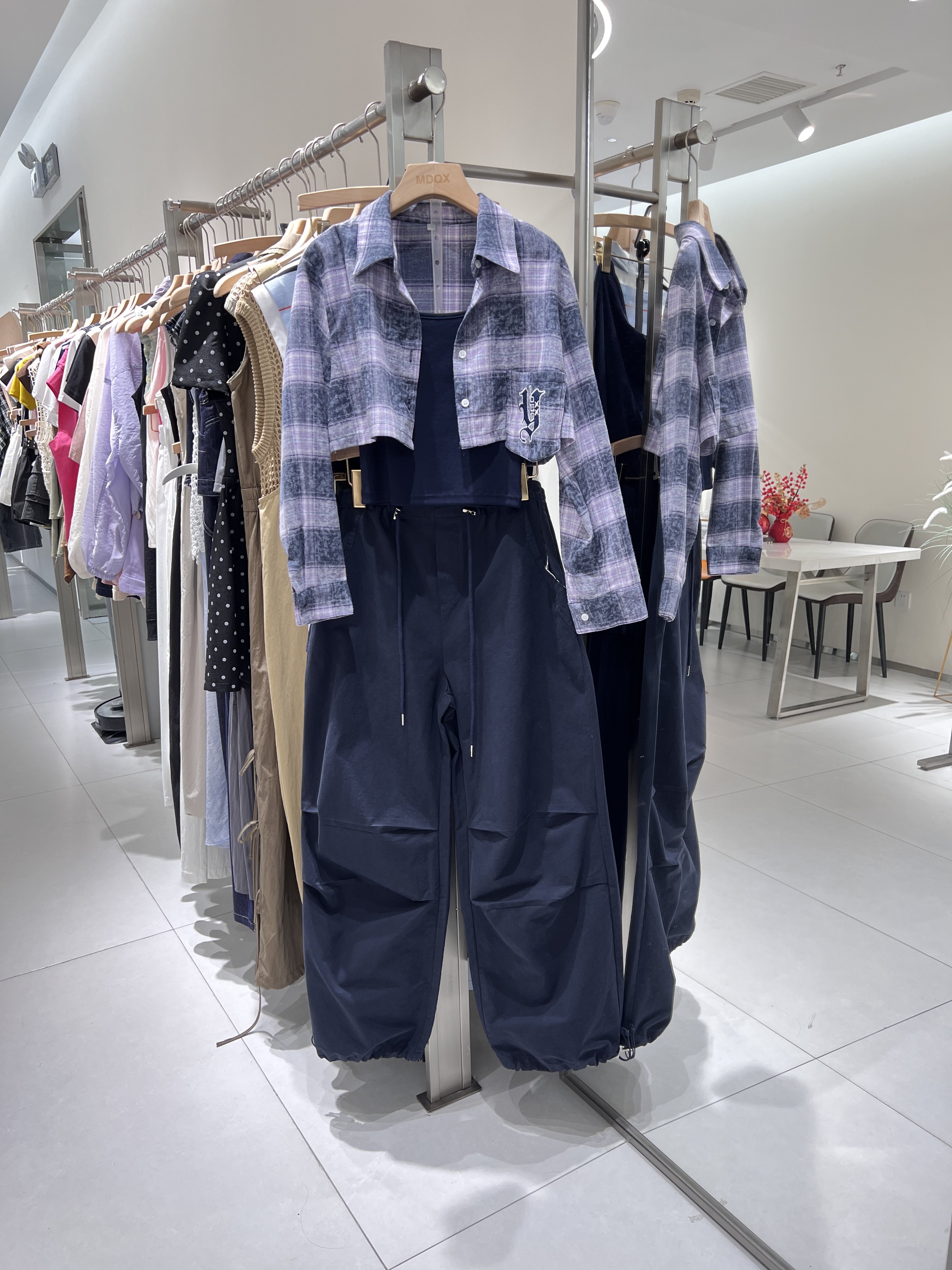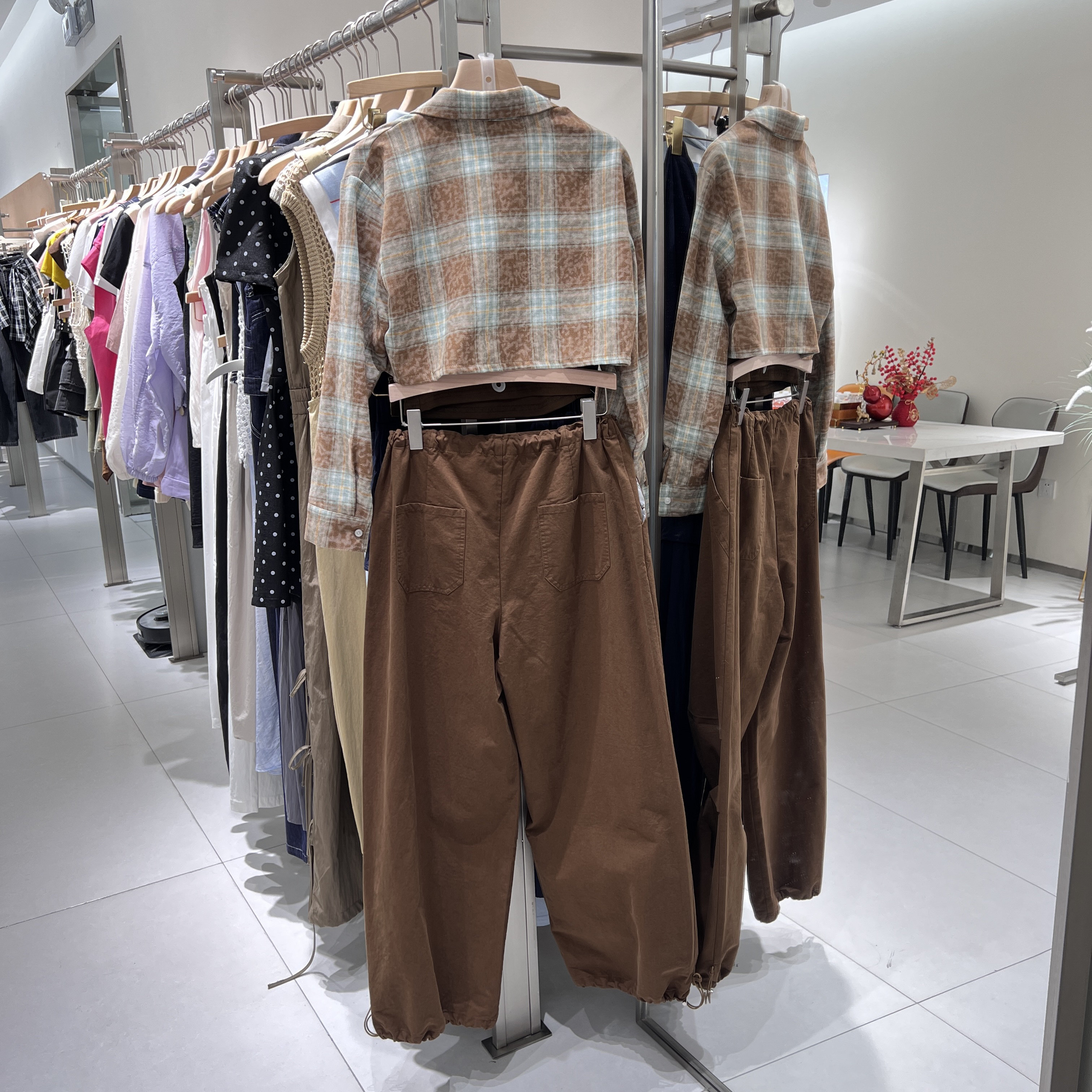 淘宝洋葱时代线上批发,2025早秋新款韩版时尚百搭格子衬衫+背心+工装裤三件套女欧货潮