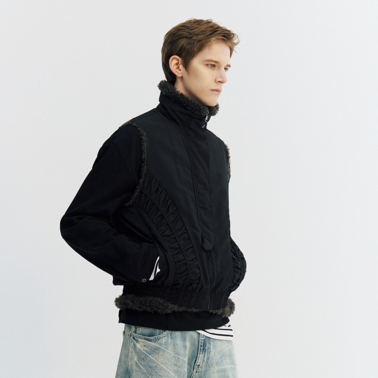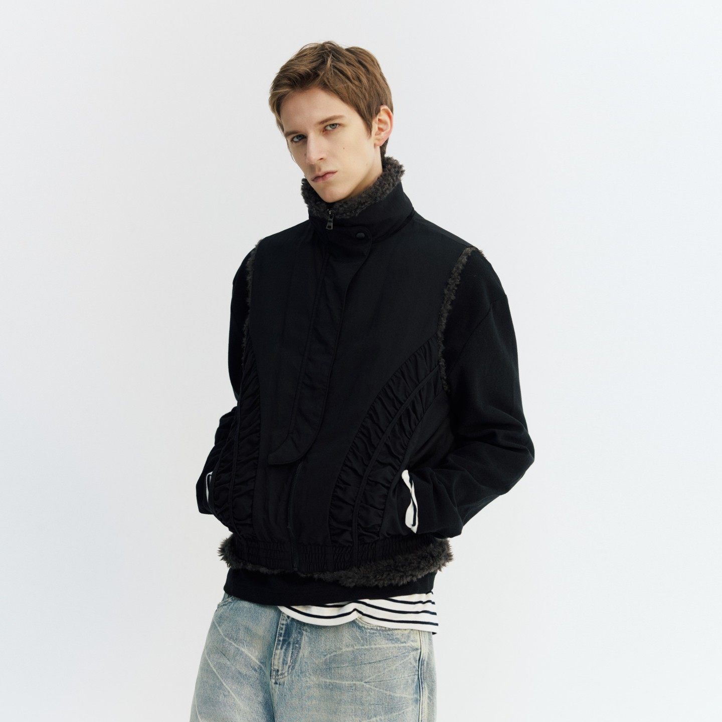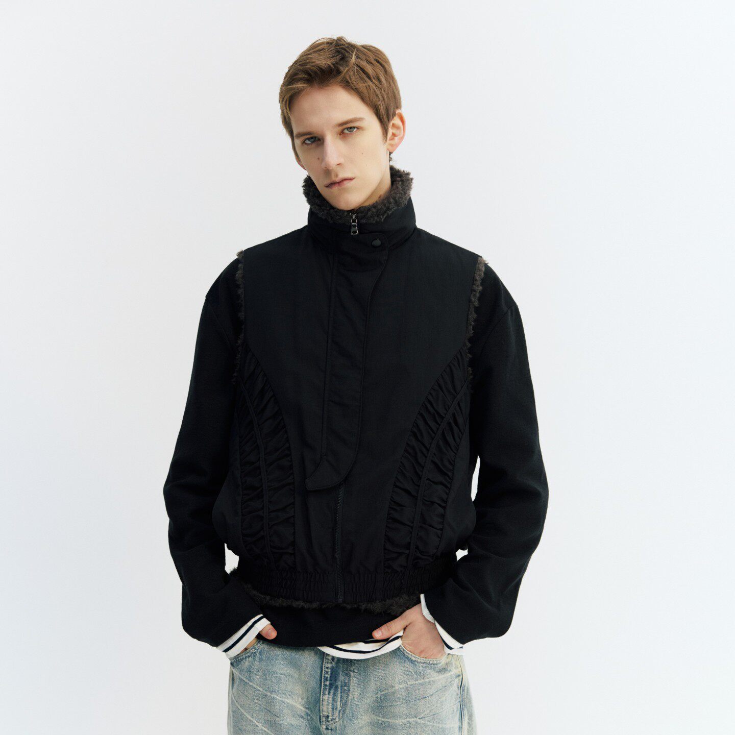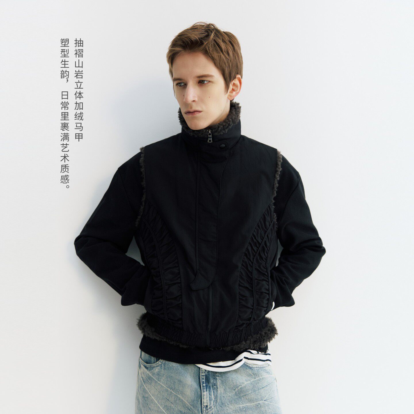 淘宝NGOARMY (NORYBRAND),NORYBRAND 时尚抽褶结构座山雕加绒马冬季新款立领毛绒保暖上衣