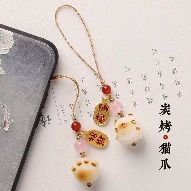 淘宝明月初升,菩提根炭烧猫爪 招财猫手机链 挂绳吊坠手机壳钥匙扣挂件