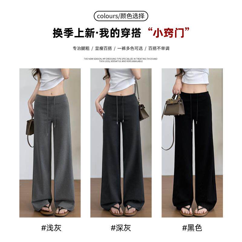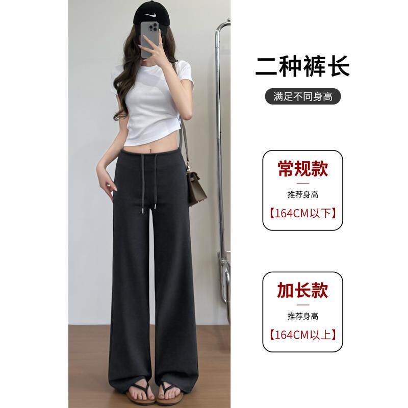 天猫康祺运动专营店,黑色运动裤女夏2025年新款高腰垂感运动护腰直筒窄版休闲阔腿卫裤